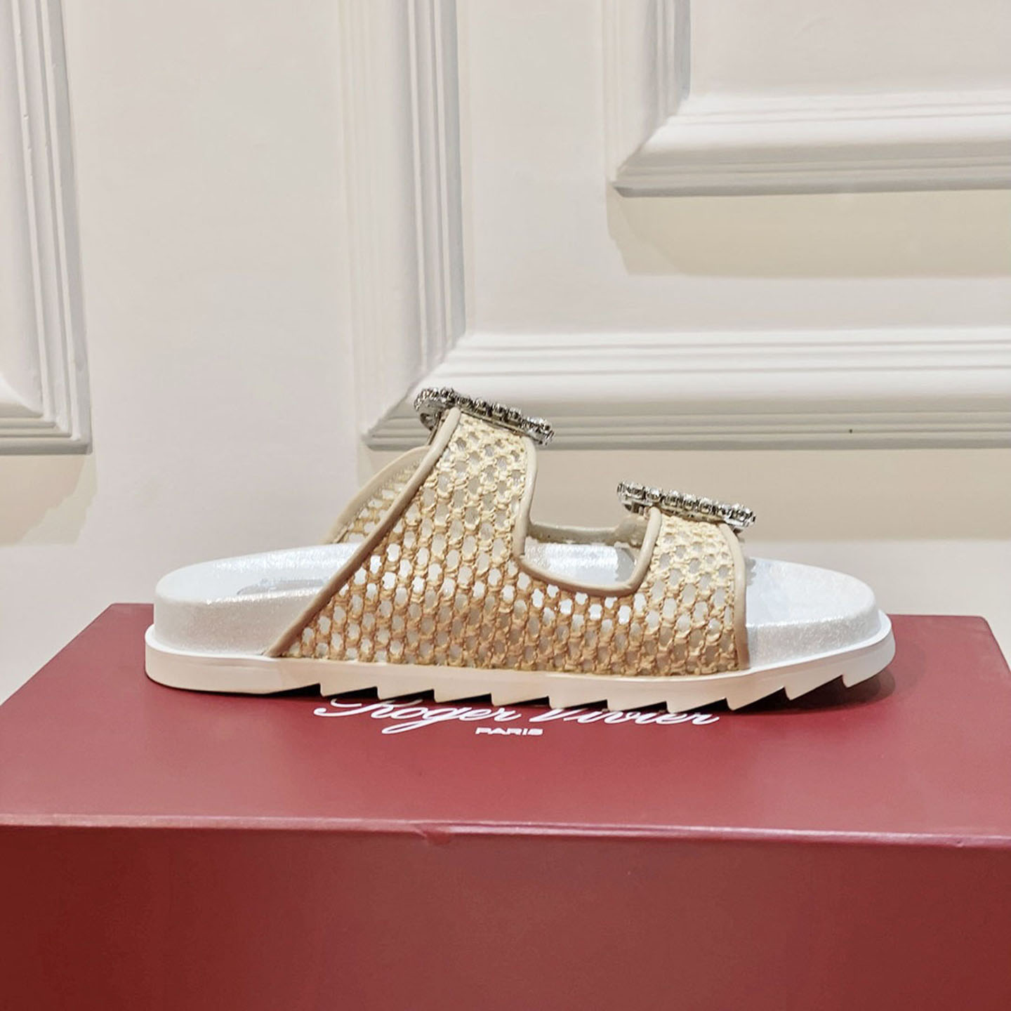 Roger Vivier Slidy Viv’ Mules Sandals In Woven Fabric With Crystal Buckle