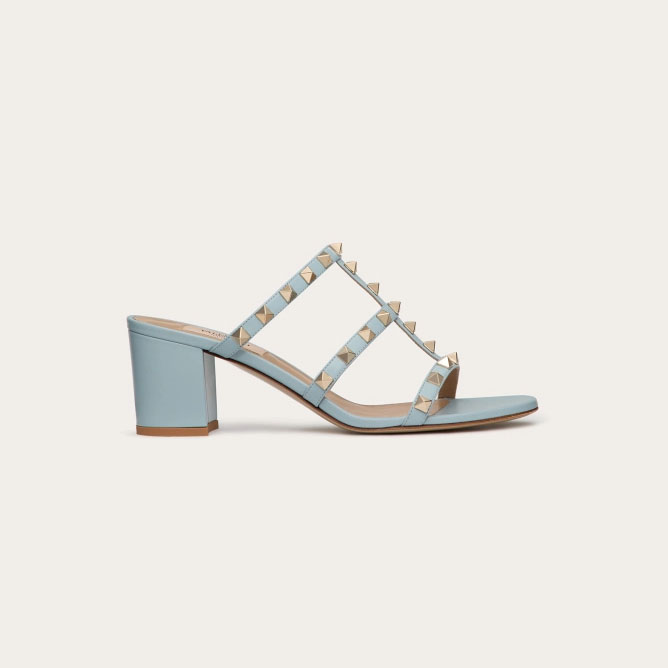 VALENTINO Blue calfskin rivet heel sandals (heel height 6cm)