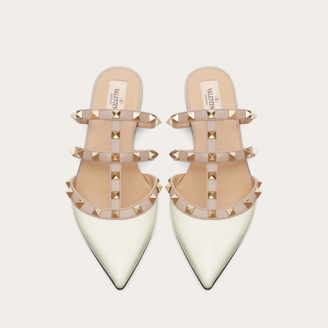 VALENTINO White patent leather studded Muller shoes