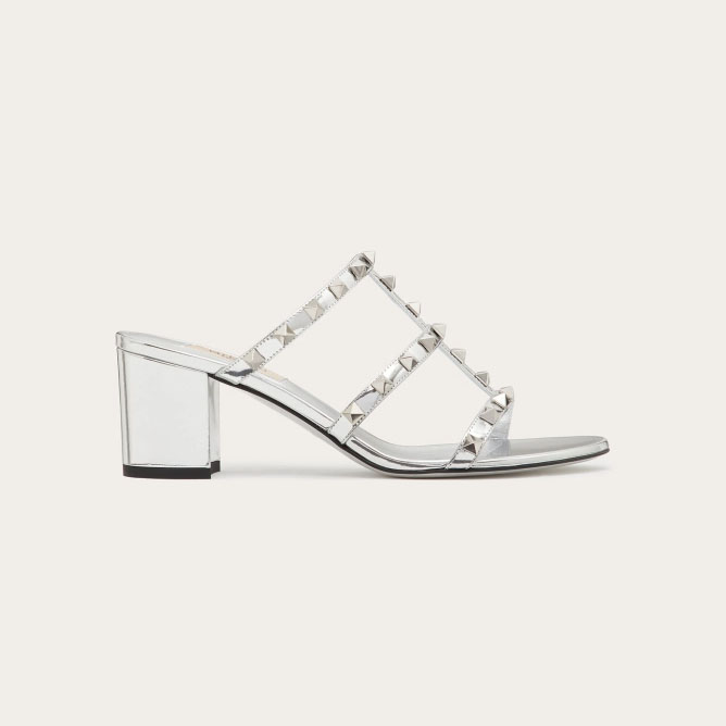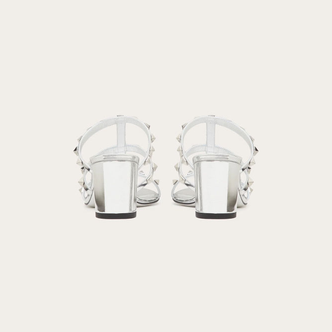 VALENTINO Silver mirror effect rivet sandals (heel height 6cm)