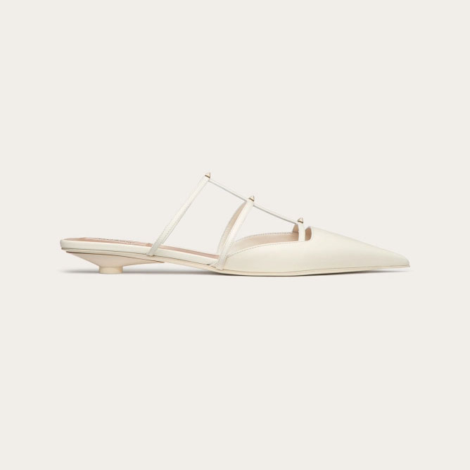 VALENTINO White Calfskin microheeled Mill slippers