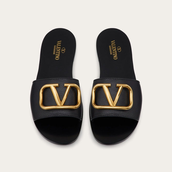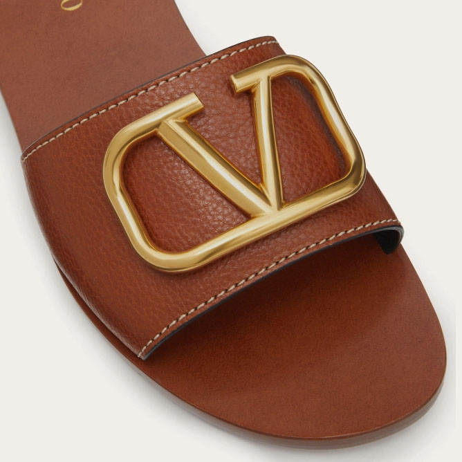 VALENTINO VLOGO SIGNATURE Grain cowhide decorative elements slipper sandals