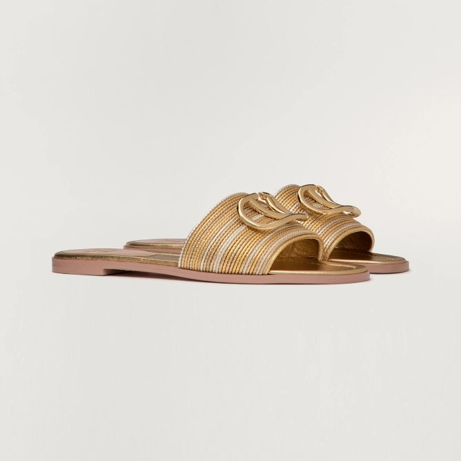 VALENTINO VLOGO SIGNATURE CORNELY Embroidered metallic leather slipper sandals