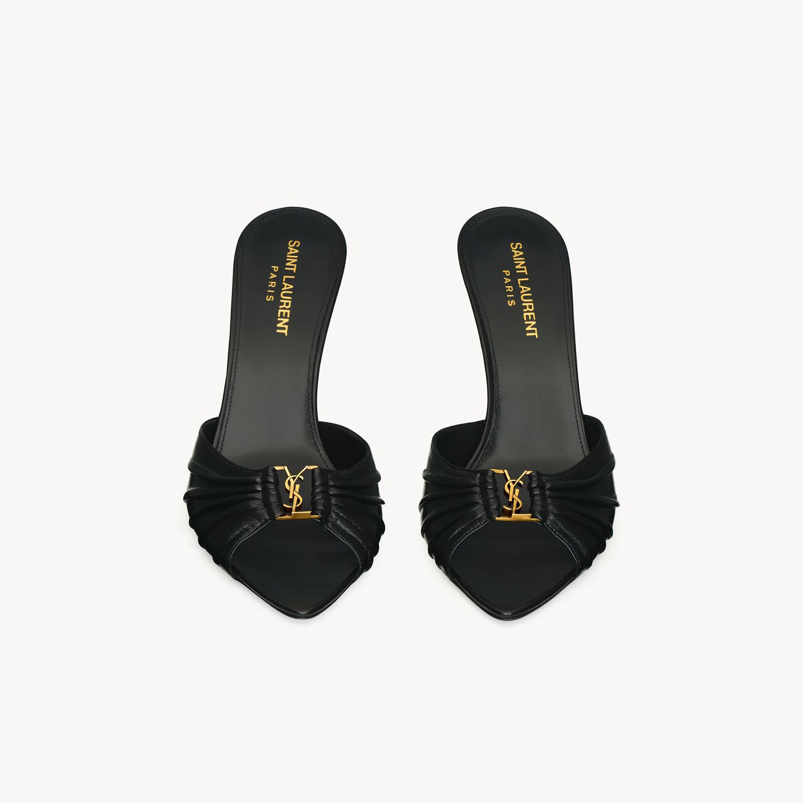 Yves Saint Laurent Black smooth leather pointy sandals high heels slippers