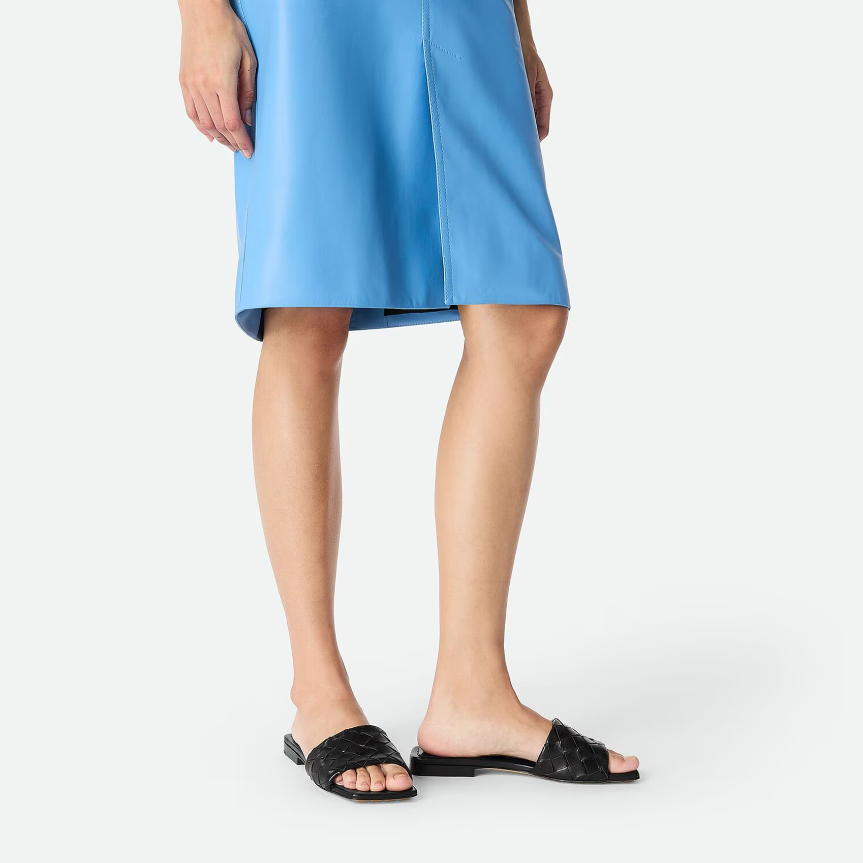 Bottega Veneta Lido Flat Sandal In Black Intrecciato Leather Flat Sandal