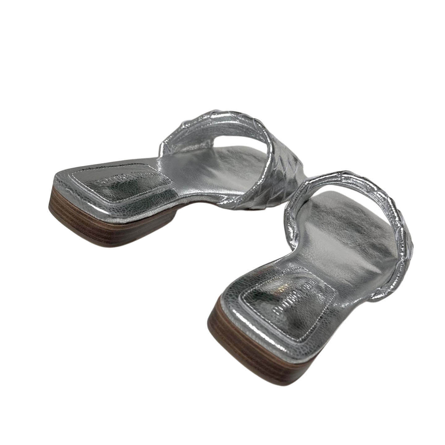 Bottega Veneta Parco Mule In Silver/Gold Intrecciato Leather Flat Mule Sandal