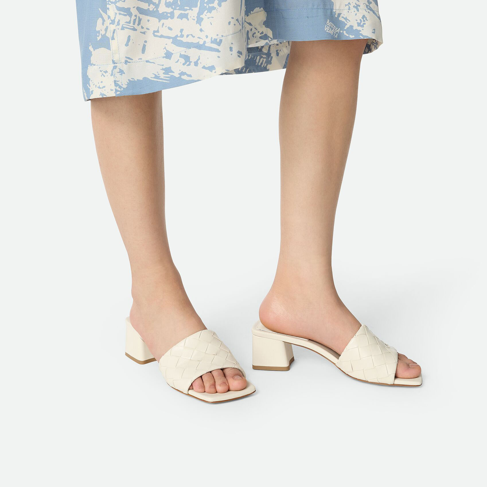 Bottega Veneta Blink Mule In Ivory Intrecciato Leather Kitten Heel Mule (Heel Height 4.5cm)