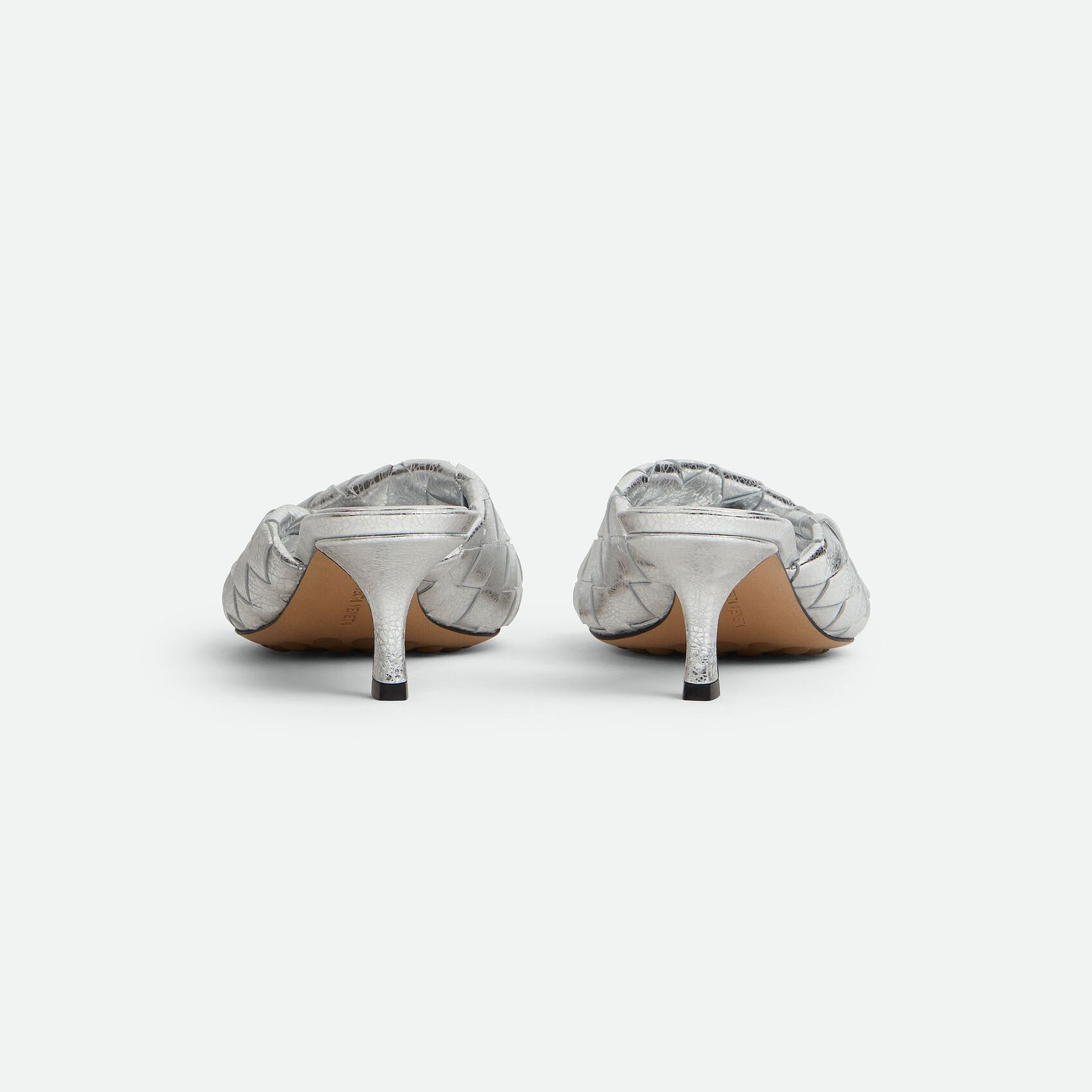 Bottega Veneta Blink Mule In Silver Intrecciato Leather Kitten Heel Mule (Heel Height 4.5cm)