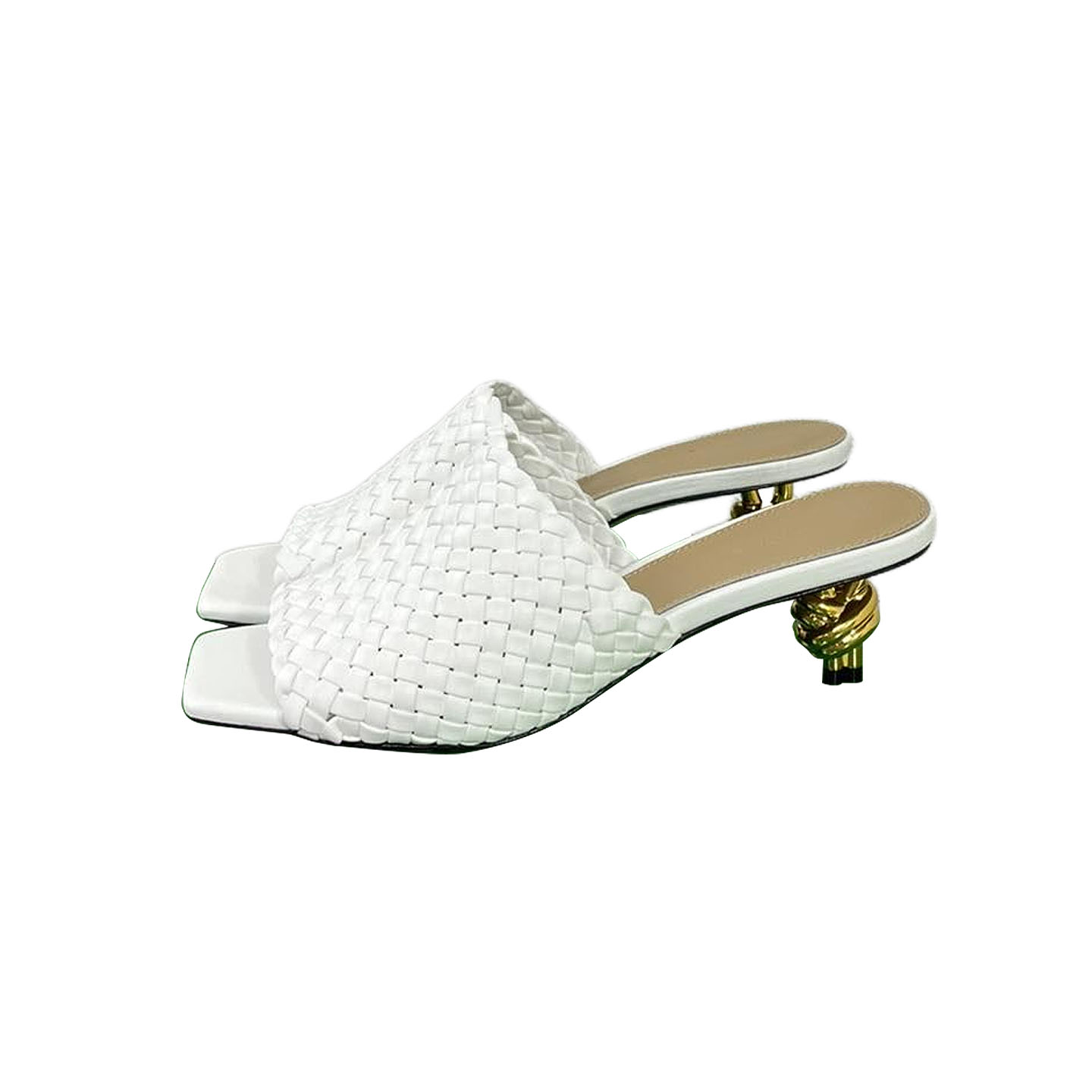 Bottega Veneta Knot Mule In White Intrecciato Leather Mule With Signature Metal Knot Heel (Heel Height 4.5cm)