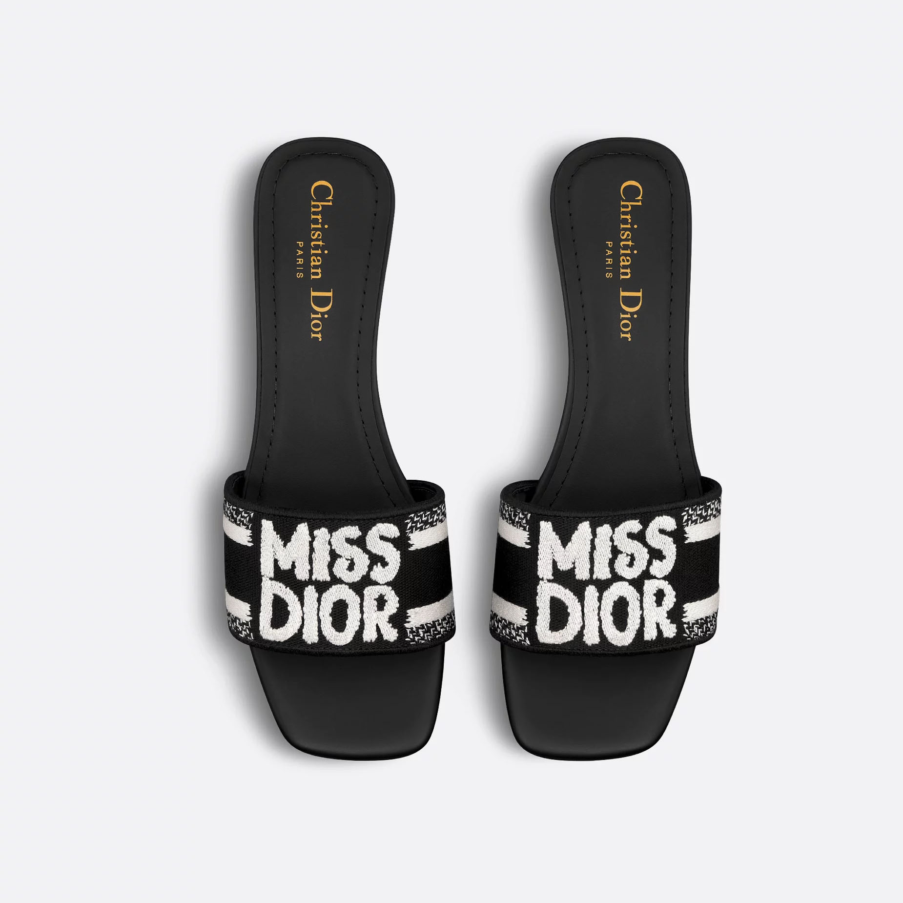 Dior black white flat slippers