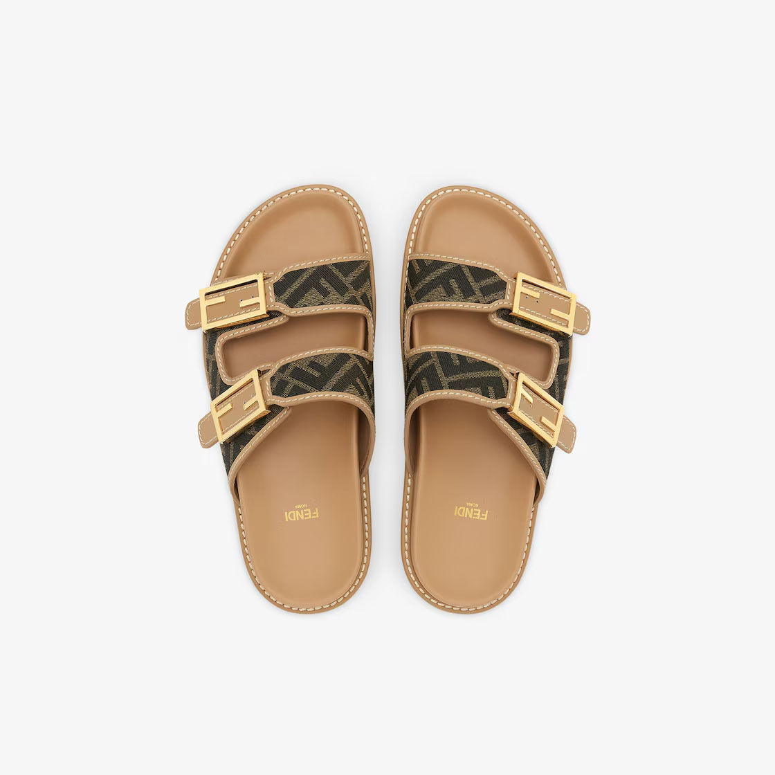 FENDI Brown FF jacquard sandals slippers
