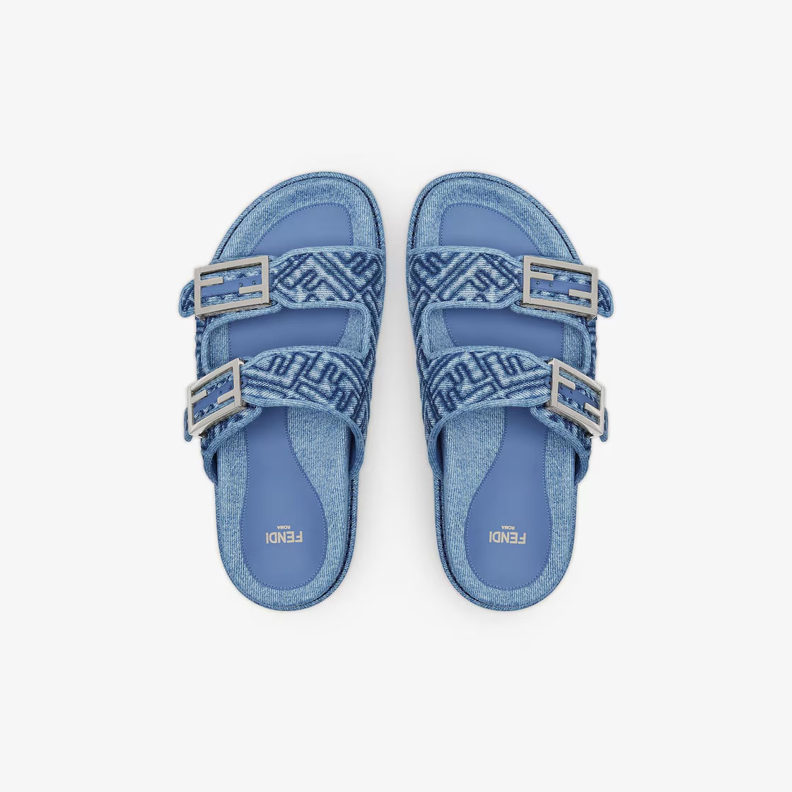 FENDI Blue FF denim platform sandals