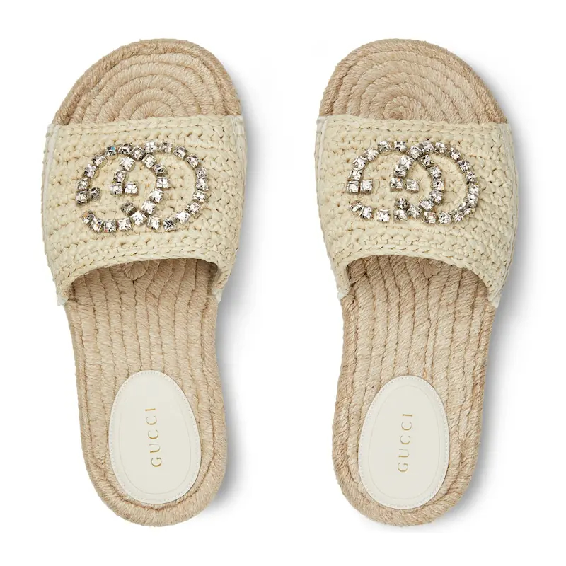 Gucci white double G rope soled shoes flat bottom slippers