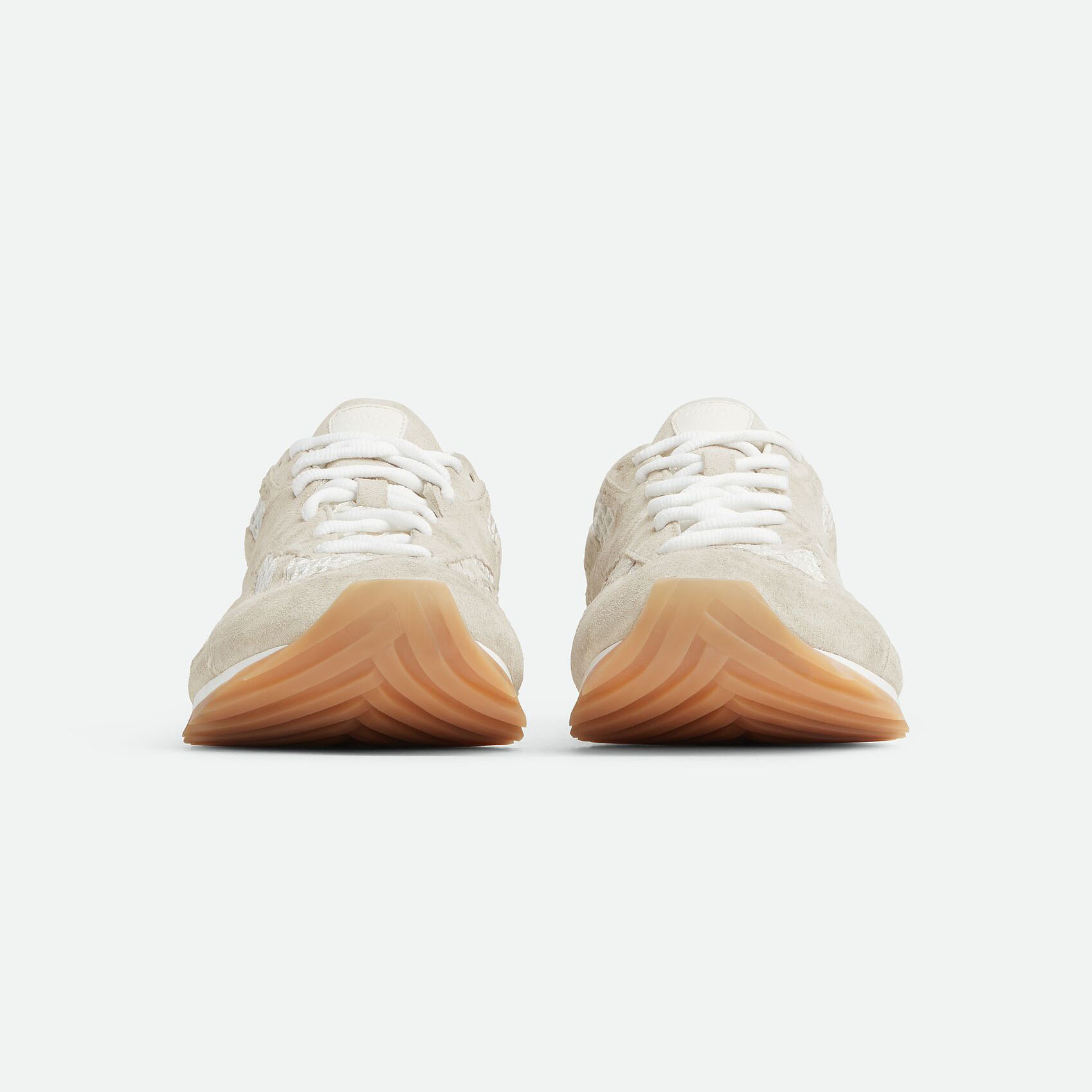 Bottega Veneta Orbit Flash Sneakers In Sea Salt Weathered Suede Leather And Mesh Lace-Up Sneaker