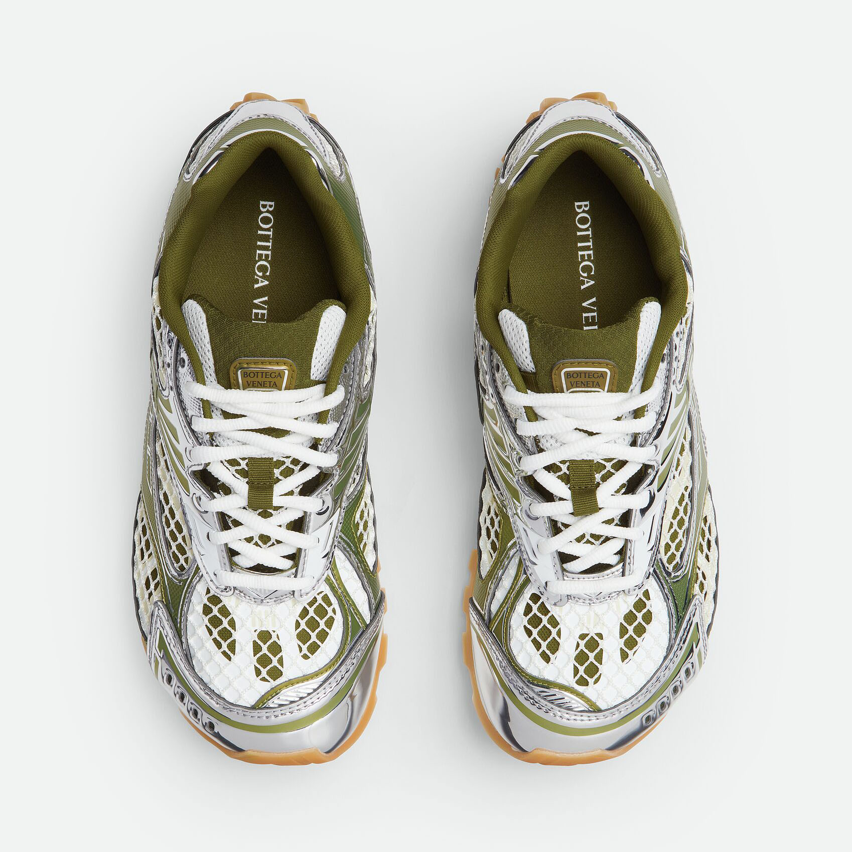 • Bottega Veneta Orbit Sneakers In Silver/Mud Technical Fabric And Mesh Lace-Up Sneaker