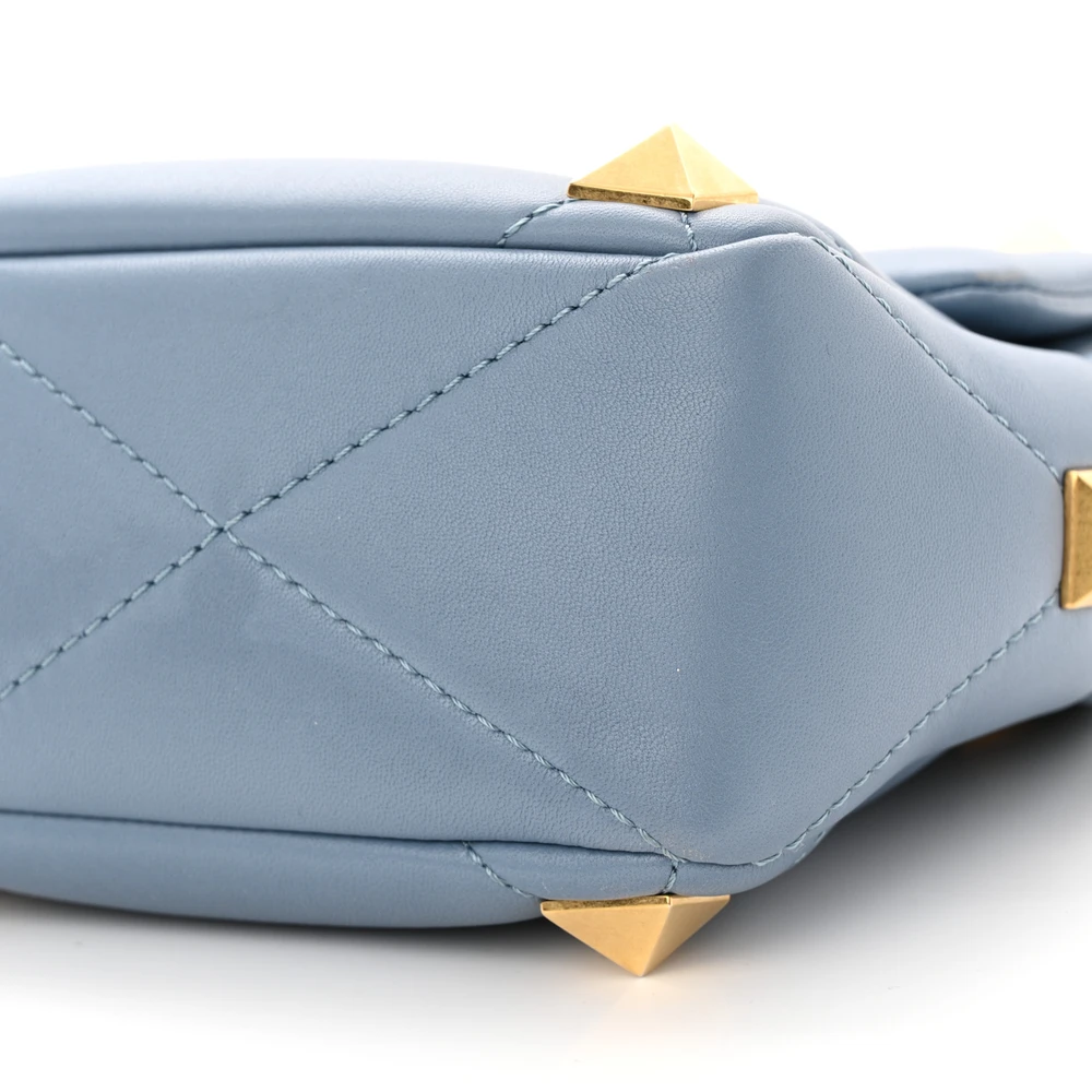 This Valentino Garavani Large Roman Stud Shoulder Bag in Niagara Blue is luxurious. Crafted from nappa leather with gold hardware for a timeless look. Spacious enough for work or travel essentials. Roman stud detailing adds a bold edge. Perfect for casual or semi-formal occasions. A stunning statement accessory.