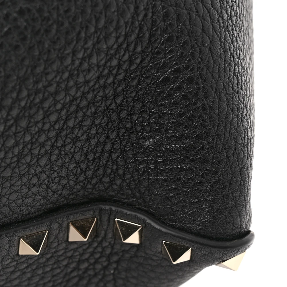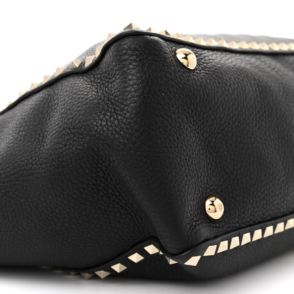 Valentino Garavani Medium Rockstud Tote Black Pebbled Calfskin Leather Gold Hardware