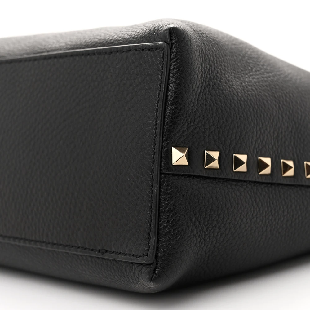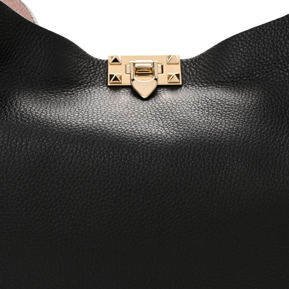 Valentino Garavani Medium Rockstud Tote Black/Rose Quartz Grainy Calfskin Leather Gold Hardware