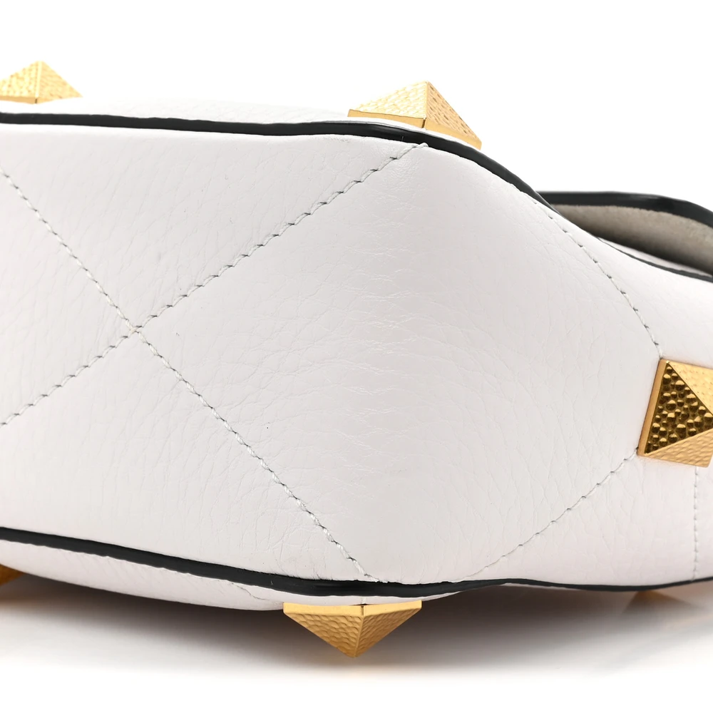 Valentino Garavani Medium Roman Stud Shoulder Bag Ivory Grained Calfskin Leather Light Gold Hardware