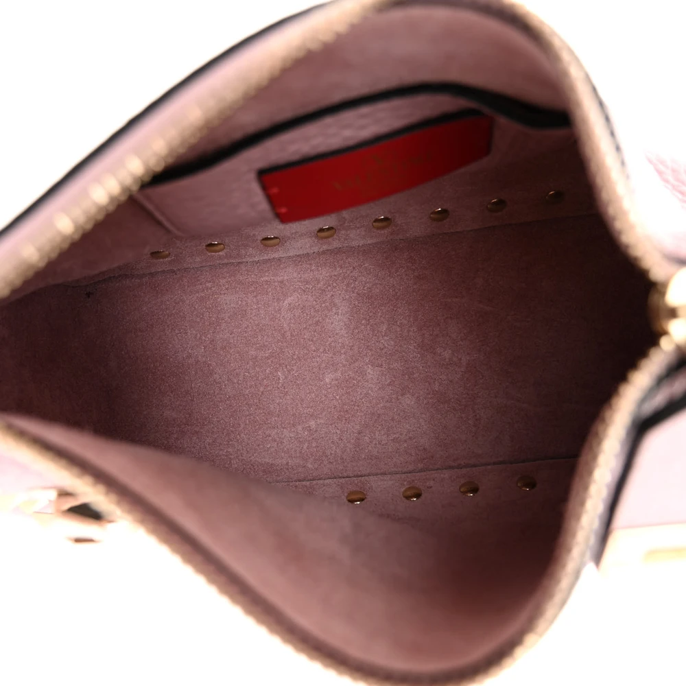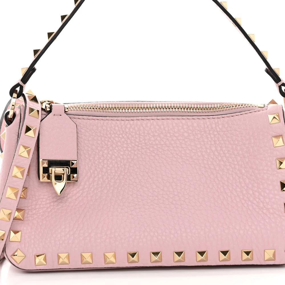 Valentino Garavani Small Rockstud Flip Lock Shoulder Bag Water Rose Pebbled Calfskin Leather Gold Hardware