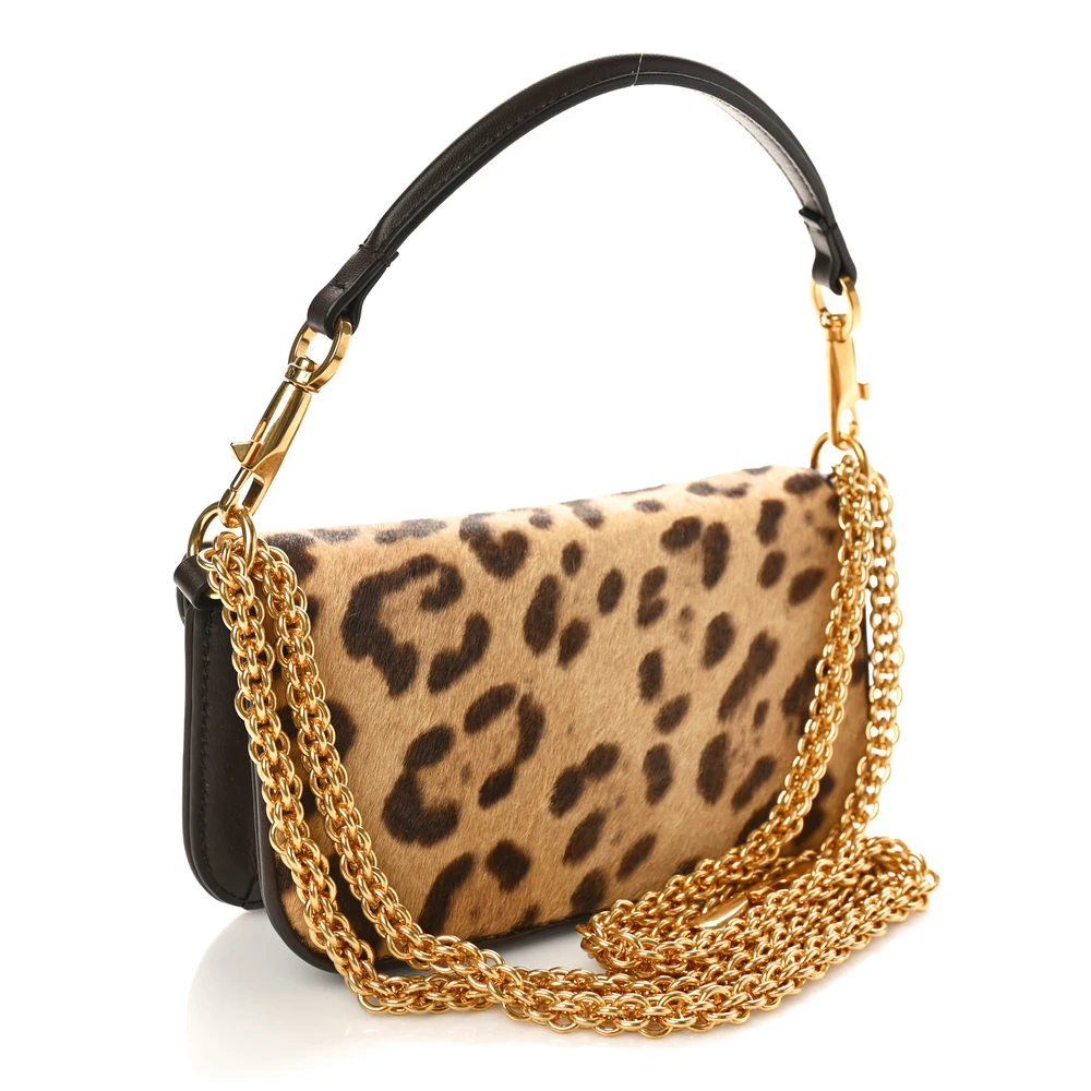 Valentino Garavani Small VLogo Locò Shoulder Bag Brown Multicolor Pony Hair Leopard Gold Hardware