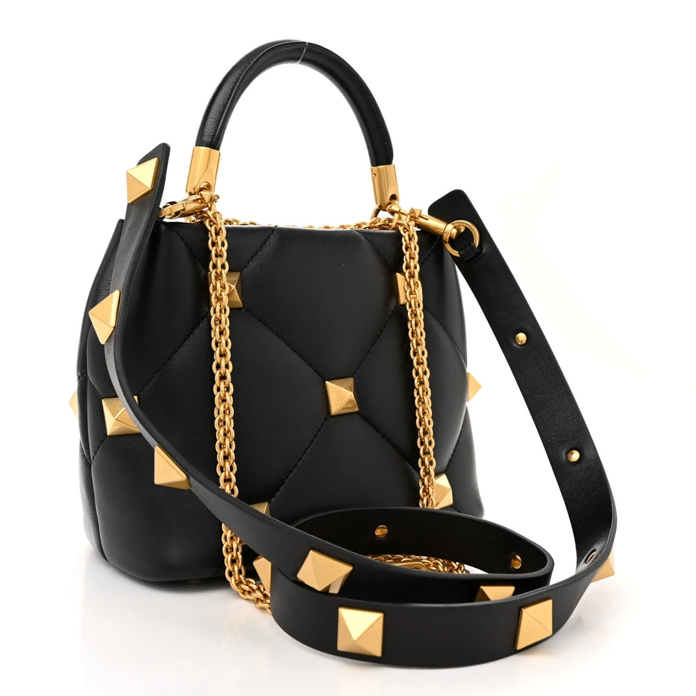 Valentino Garavani Small Roman Stud Shoulder Bag Black Nappa Leather Brass Hardware