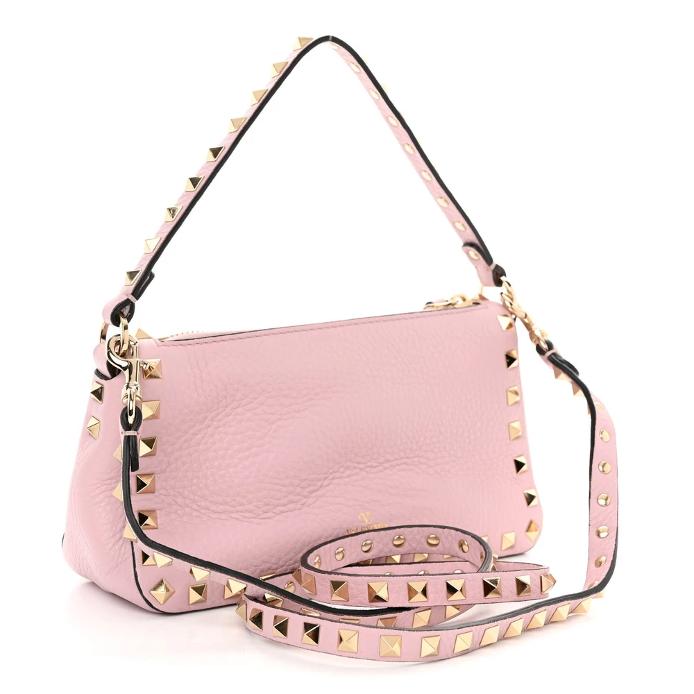 Valentino Garavani Small Rockstud Crossbody Pouch Poudre Grainy Calfskin Leather Gold Hardware