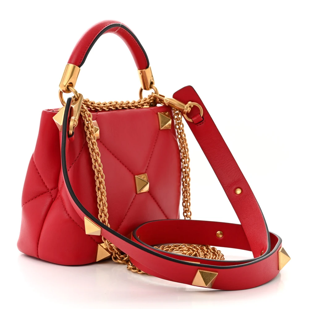 Valentino Garavani Small Roman Stud The Handle Bag Rouge Pur Nappa Leather Gold Hardware