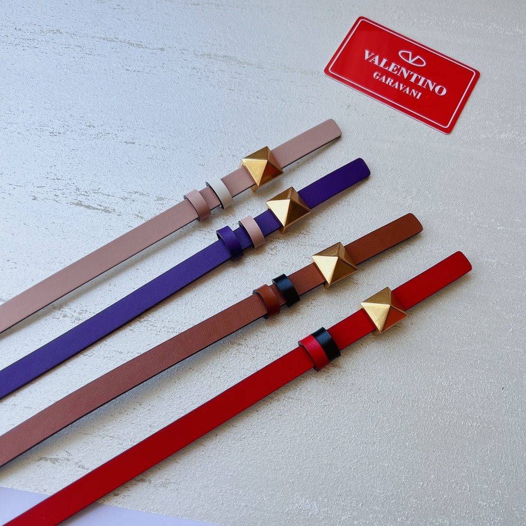 Valentino Rockstud Reversible Belt In Brown/Nude/Purple Calfskin With Gold Hardware 12mm