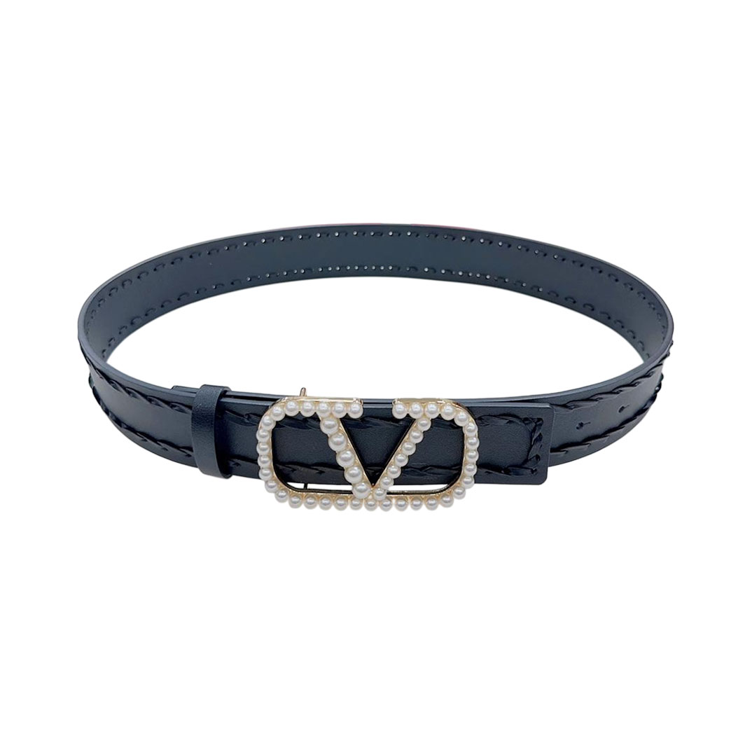 • Valentino V Buckle With Pearls Belt In White/Red/Black/Pink Calfskin With Gold Hardware 40mm