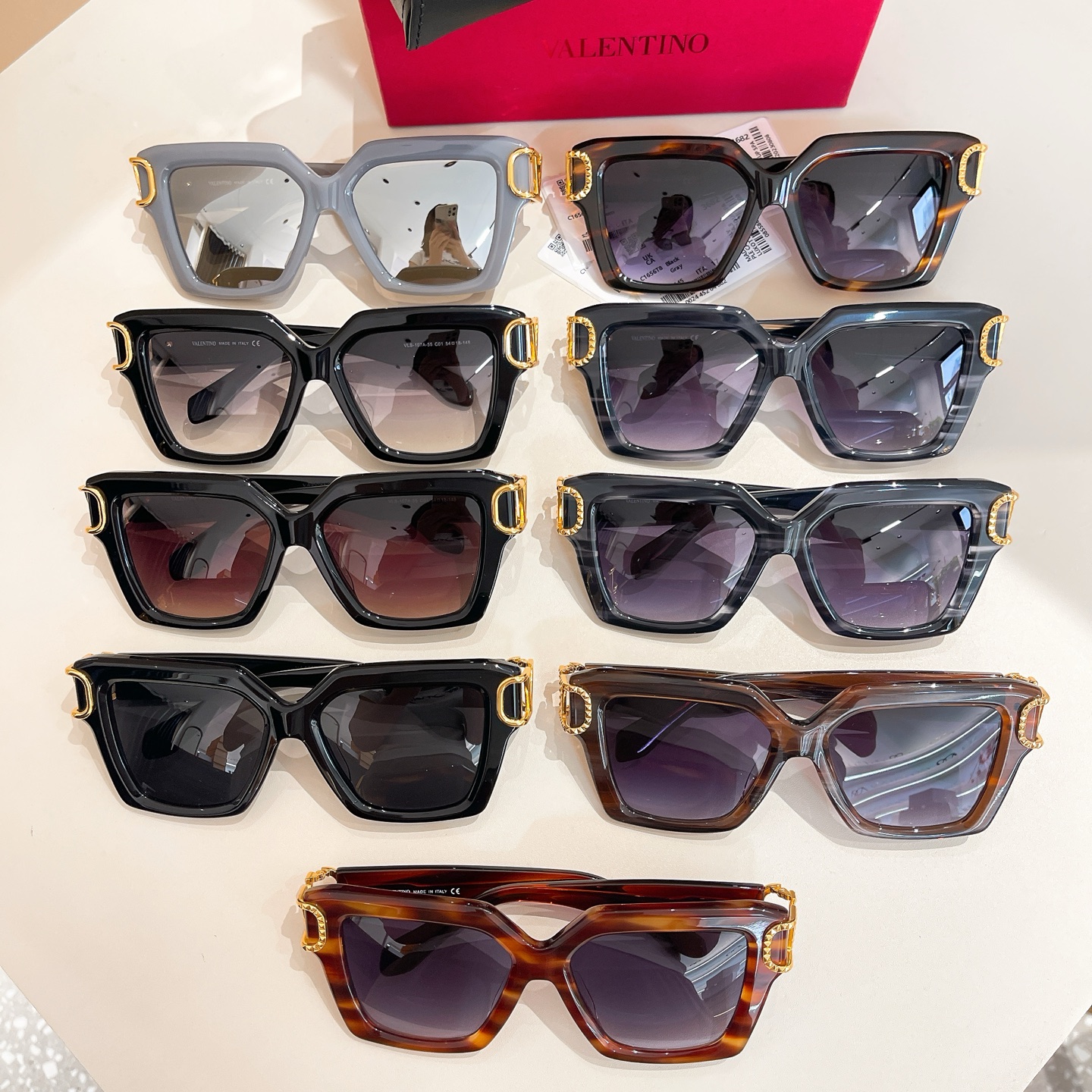 Valentino square frame glasses orange/purple/eggplant/blue/brown/black/gun black color Size 60口18-145