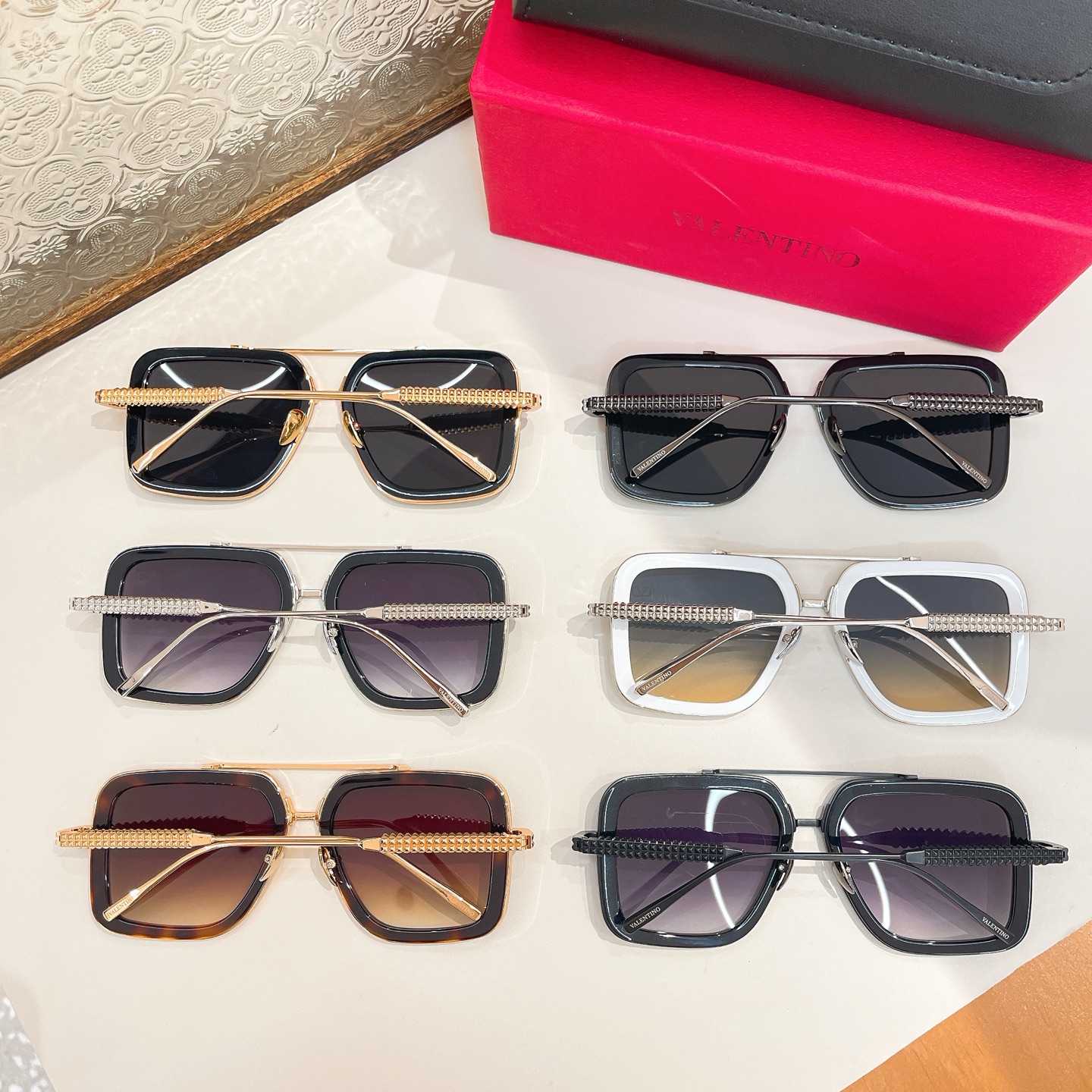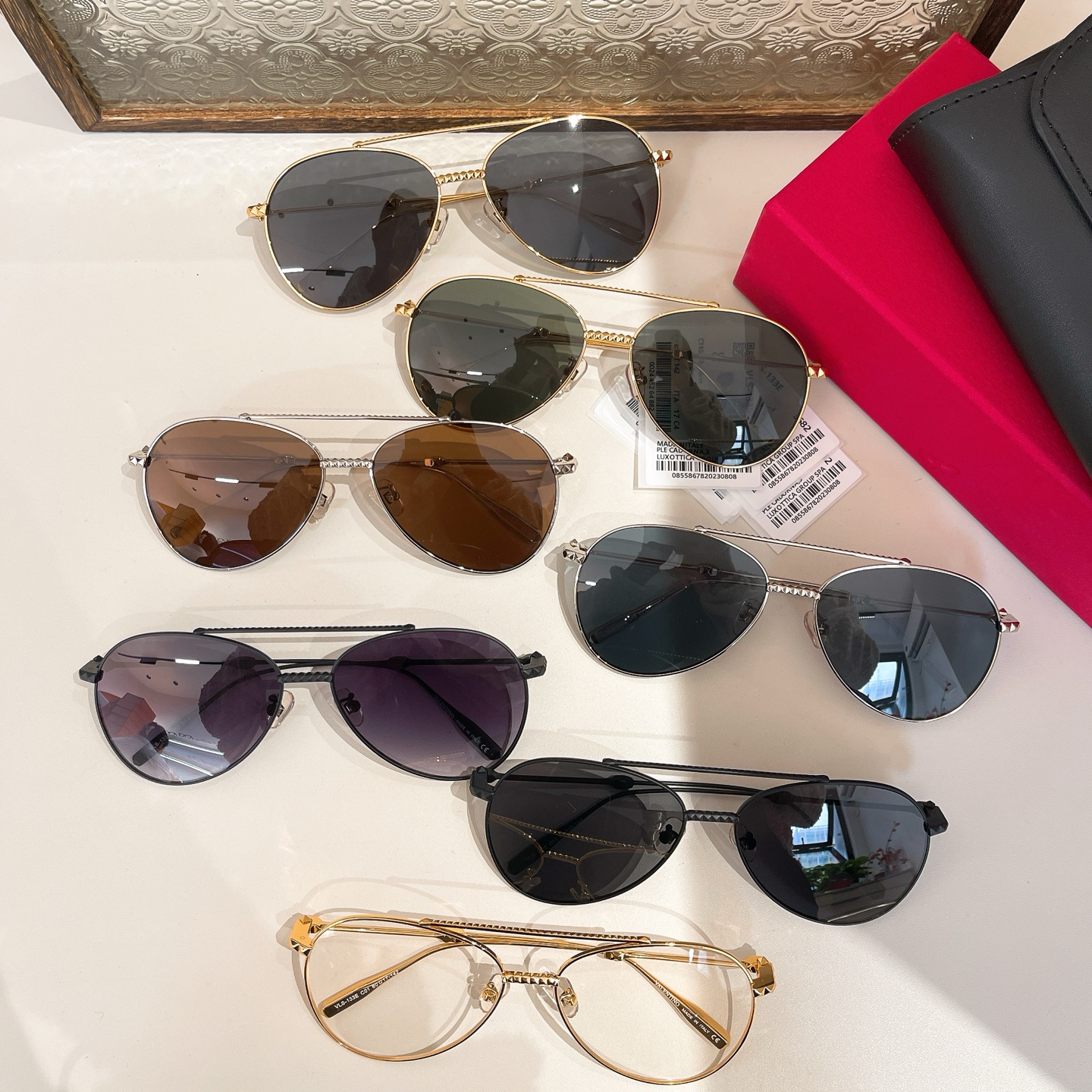 Valentino Pilot glasses rose gold/black gold/eggplant/gun black/green/gold/brown color Size 59口14-145