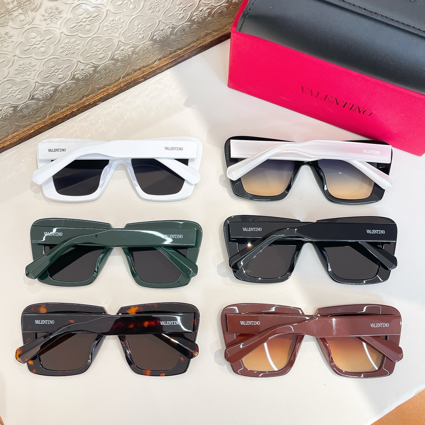 Valentino square frame glasses white/black/leopard/black white/green/red color Size 64口5-145