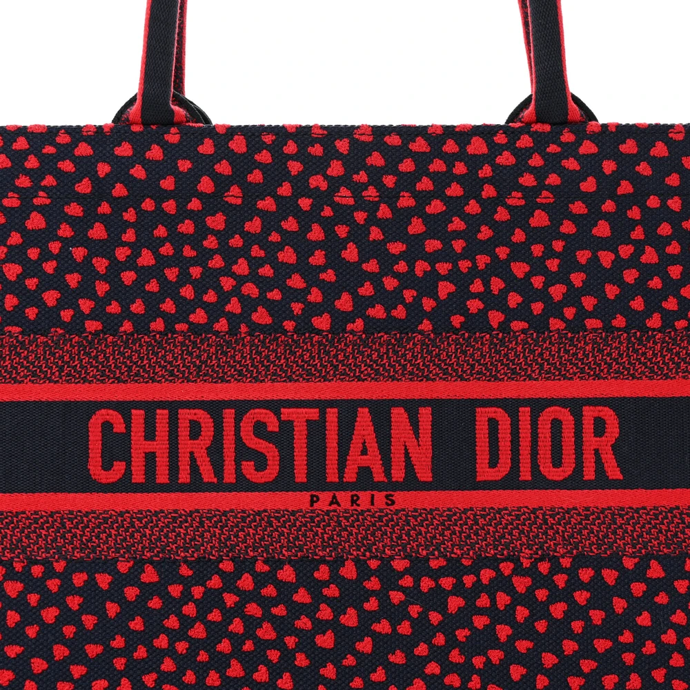 Dior Medium Book Tote Red Multicolor Pop Heart I Love Paris Embroidered Canvas