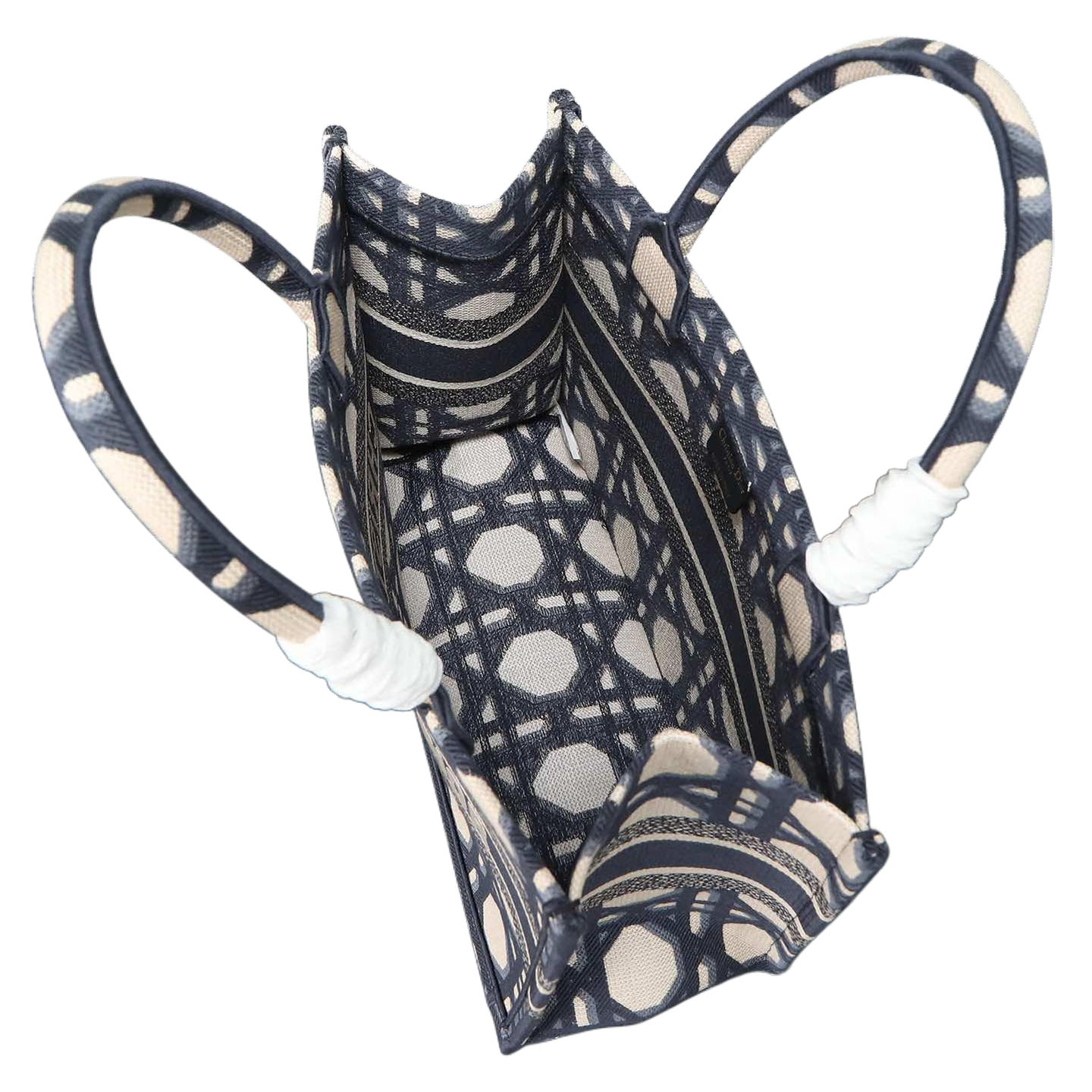 This Dior Medium Book Tote in Beige And Blue Macrocannage Embroidered Canvas is an artistic and luxurious statement. Spacious and lightweight, it’s perfect for travel or daily use. The intricate embroidery showcases Dior’s exceptional craftsmanship. A bold addition for those seeking unique accessories.