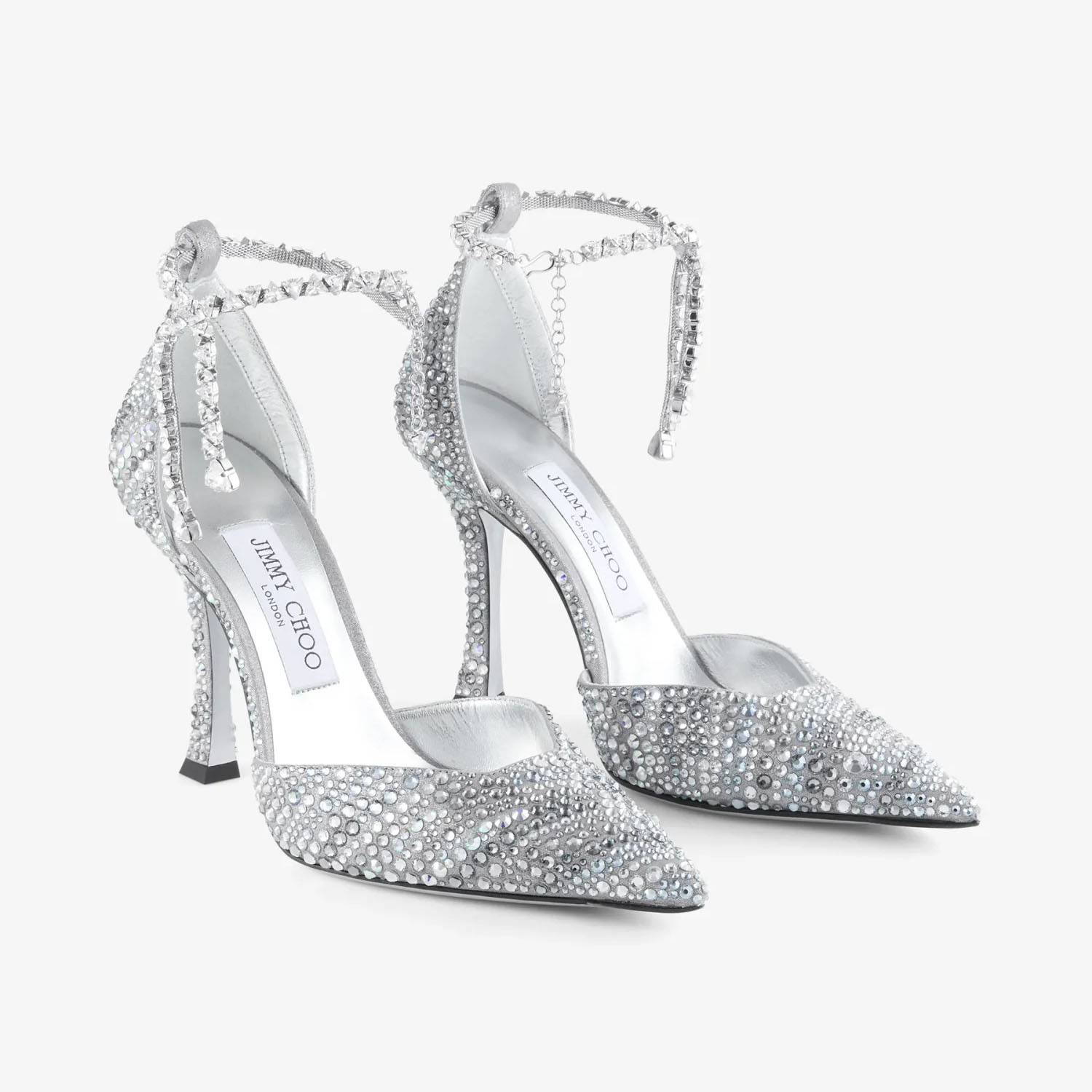 JIMMY CHOO Crystal embellished silver sparkly suede heels