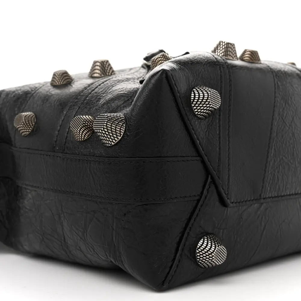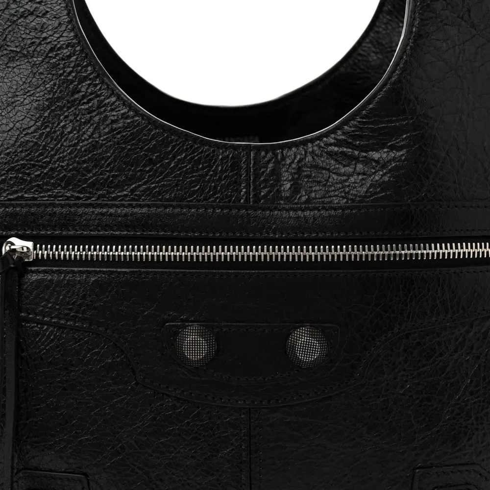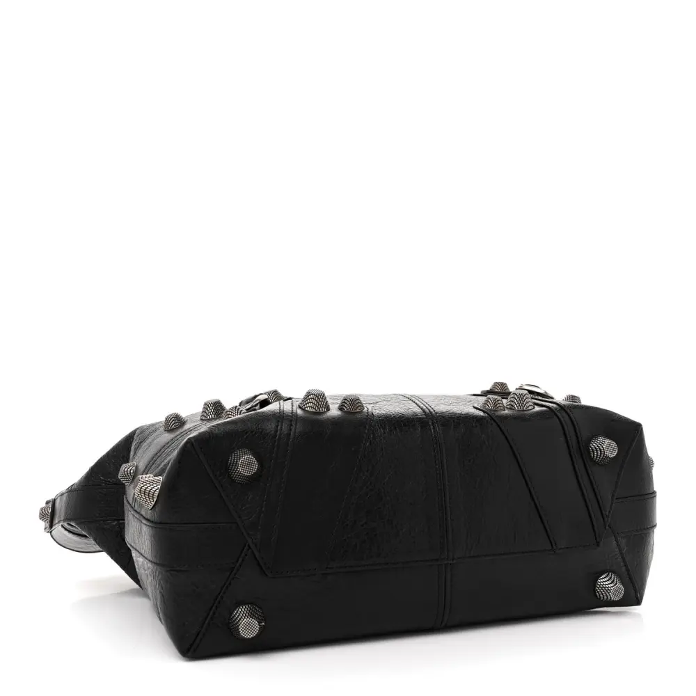 Balenciaga Medium Le Cagole Carry All Bag Black Agneau Arena Leather Silver Hardware