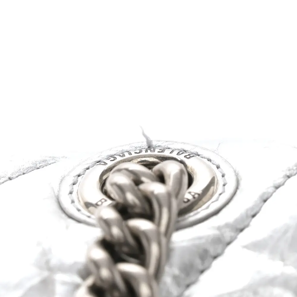 Balenciaga Small Crush Chain Bag Beige Quilted Crushed Calfskin Leather Silver Hardware