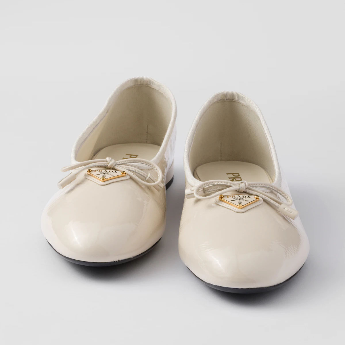 PRADA Patent paint leather Flat Shoes white Ballet Shoes