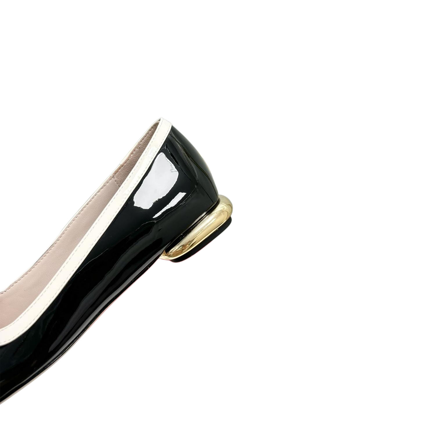 • Roger Vivier Broche Vivier Ballerinas Flat Shoes In White/Black/Beige Patent Leather