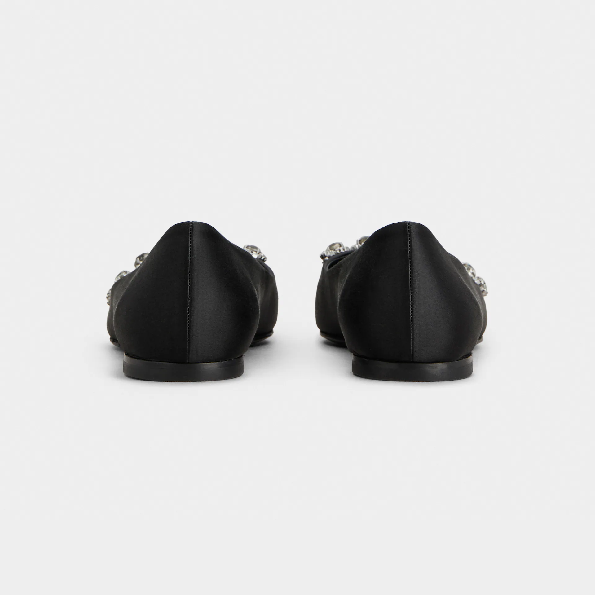 • Roger Vivier Efflorescence Ballerinas In White/Black Satin With Crystal Flowers Buckle (Heel Height 1cm)