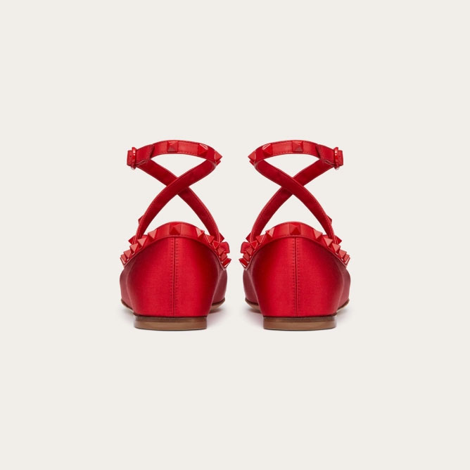 VALENTINO Rivet satin red ballet flats shoes
