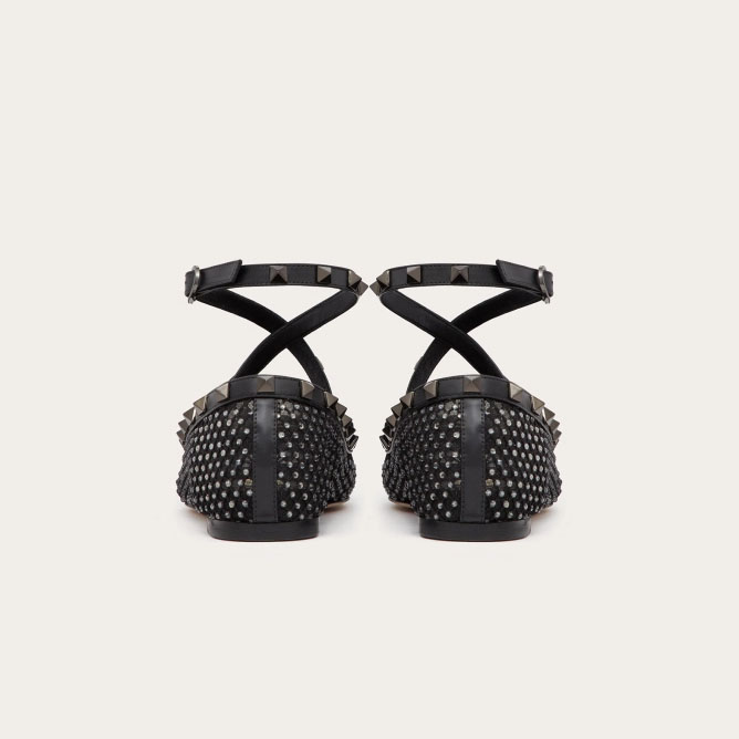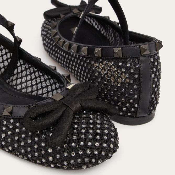 VALENTINO Rivet satin black ballet flats shoes
