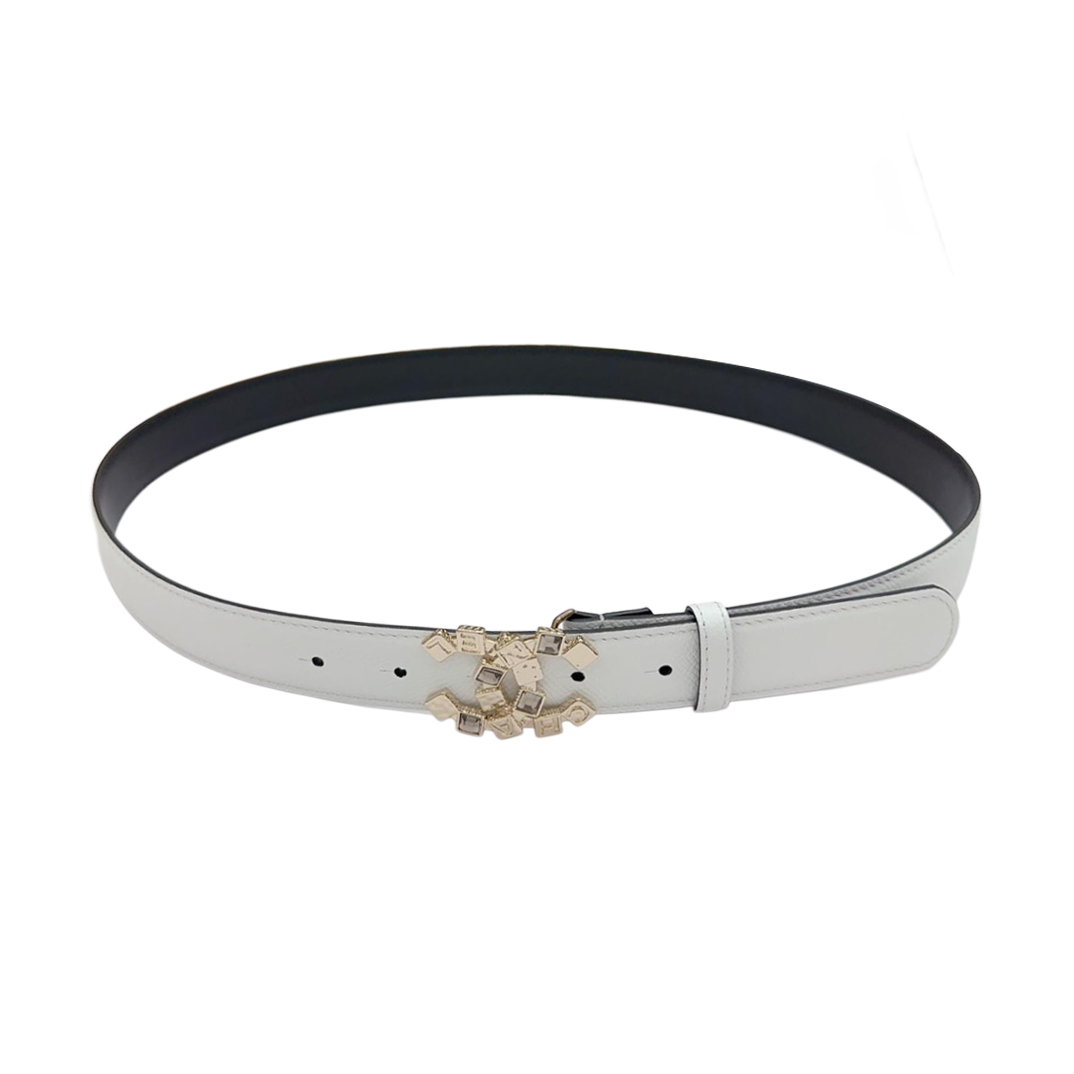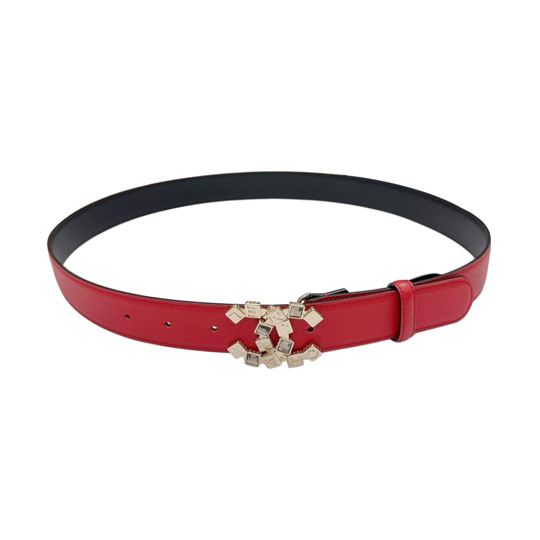 Chanel Women’s Decorative CC Buckle Belt In Black/White/Red/Brown Calfskin With Gold Hardware 30mm