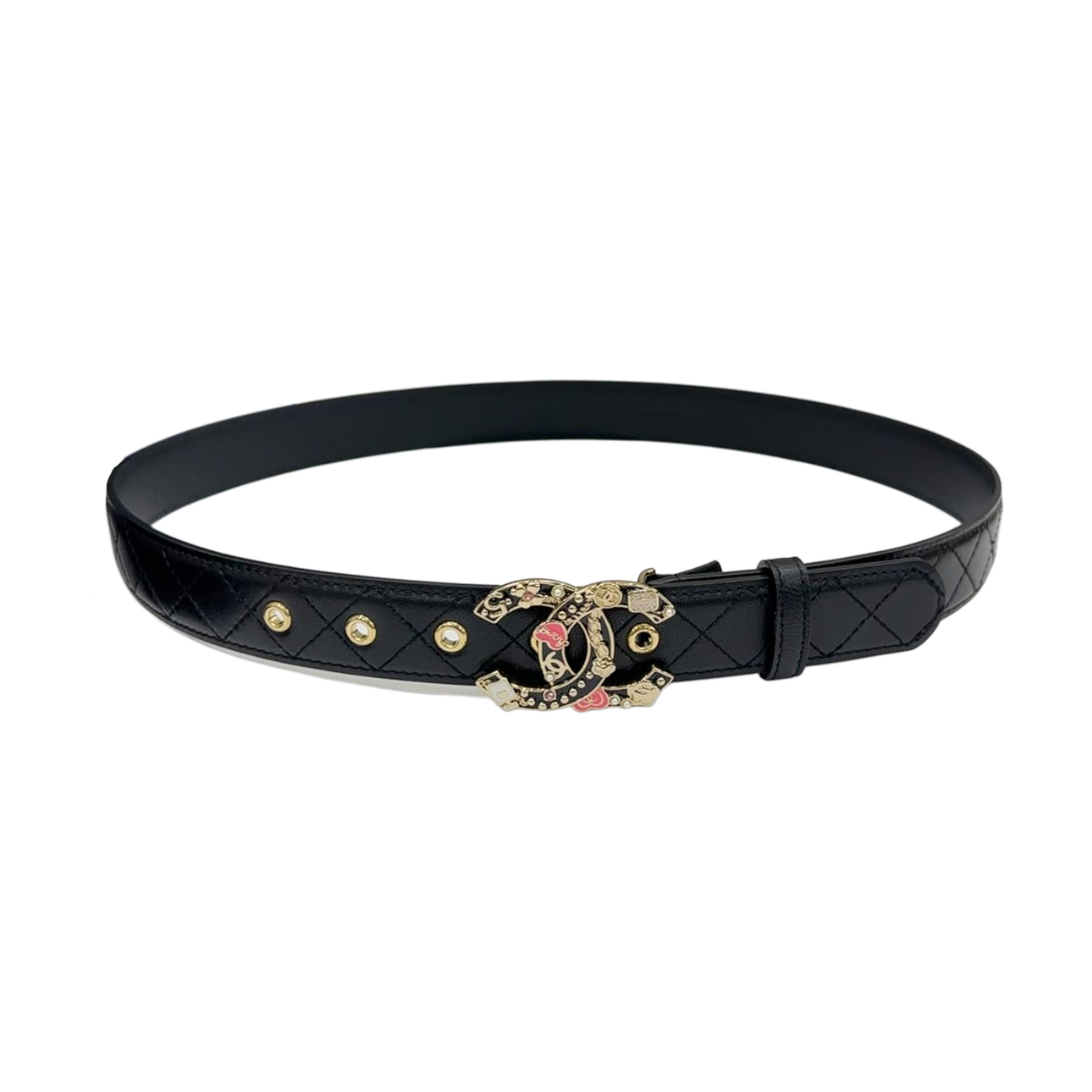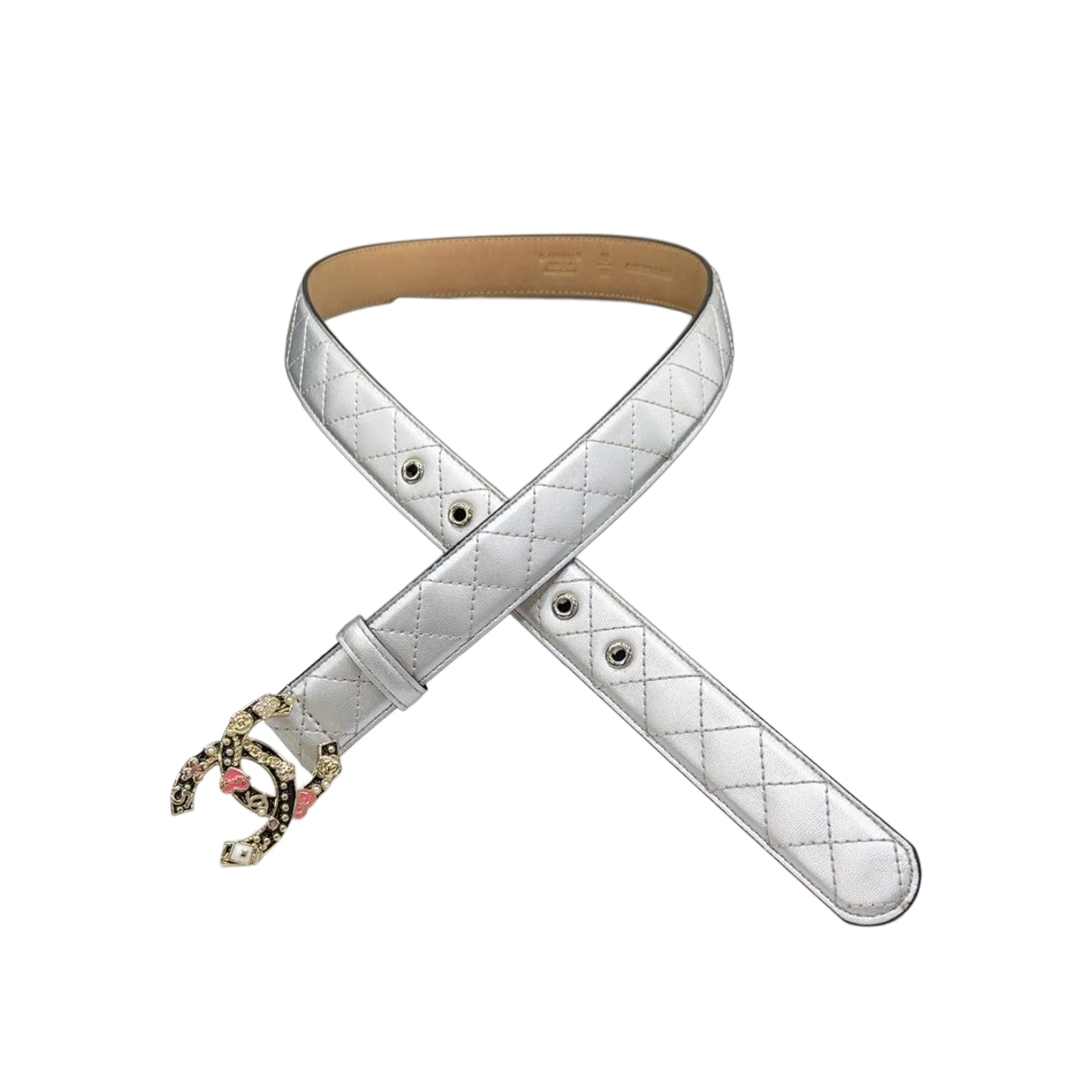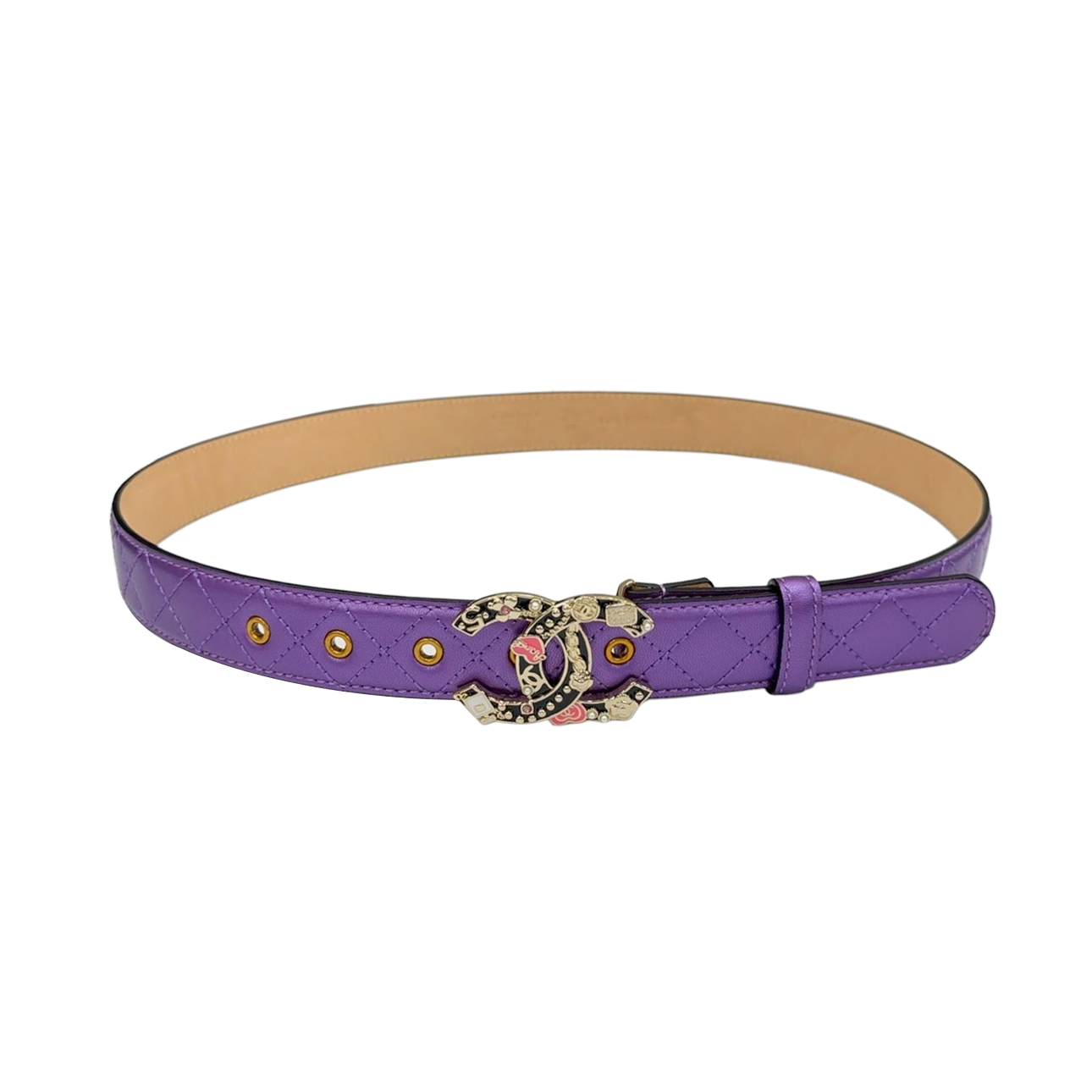 Chanel Women’s Decorative CC Buckle Belt In Silver/Purple Diamond Stitching Calfskin With Gold/Silver Hardware 30mm