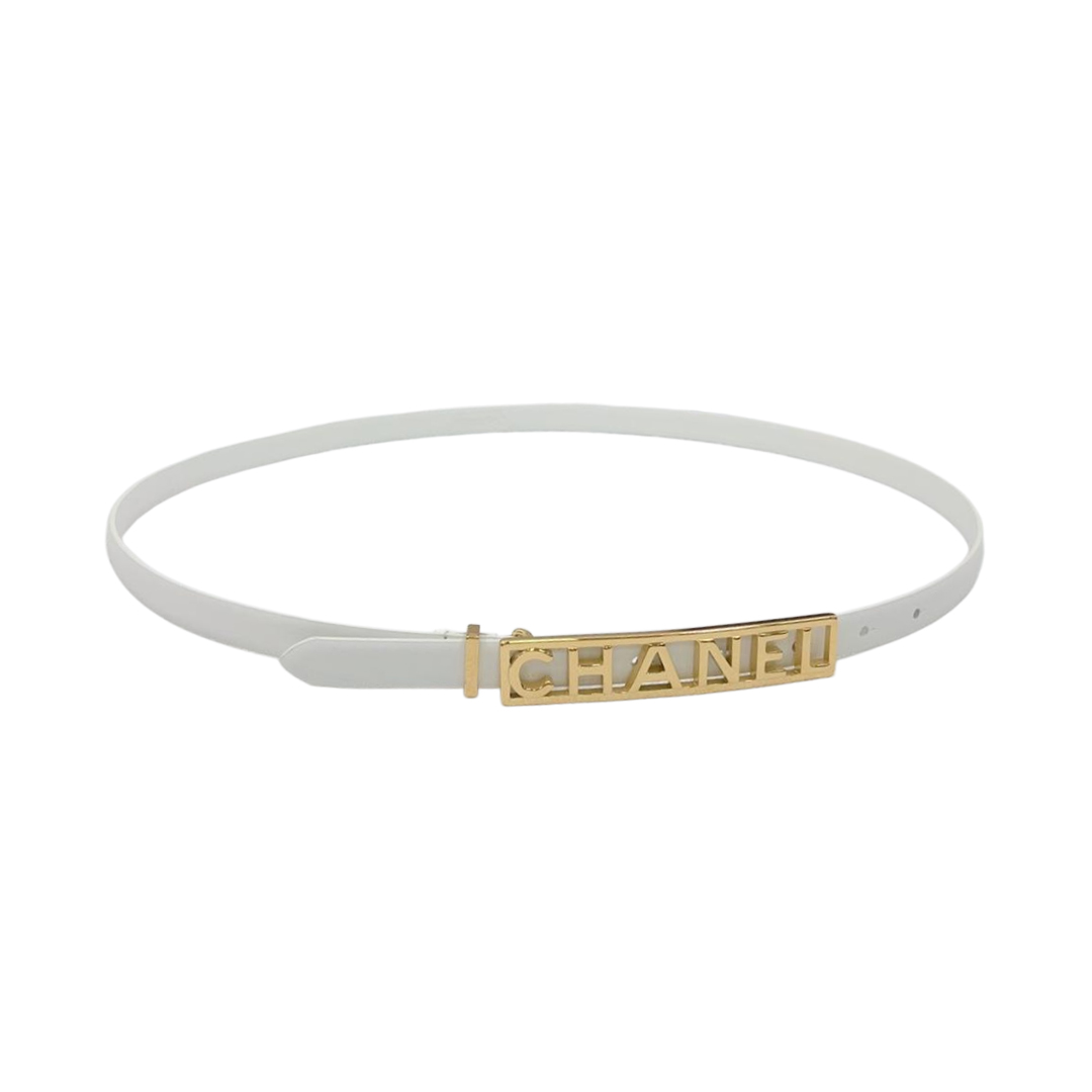 Chanel Women’s Rectangled Buckle Belt In Black/White/Brown/Red Calfskin With Gold Hardware 15mm