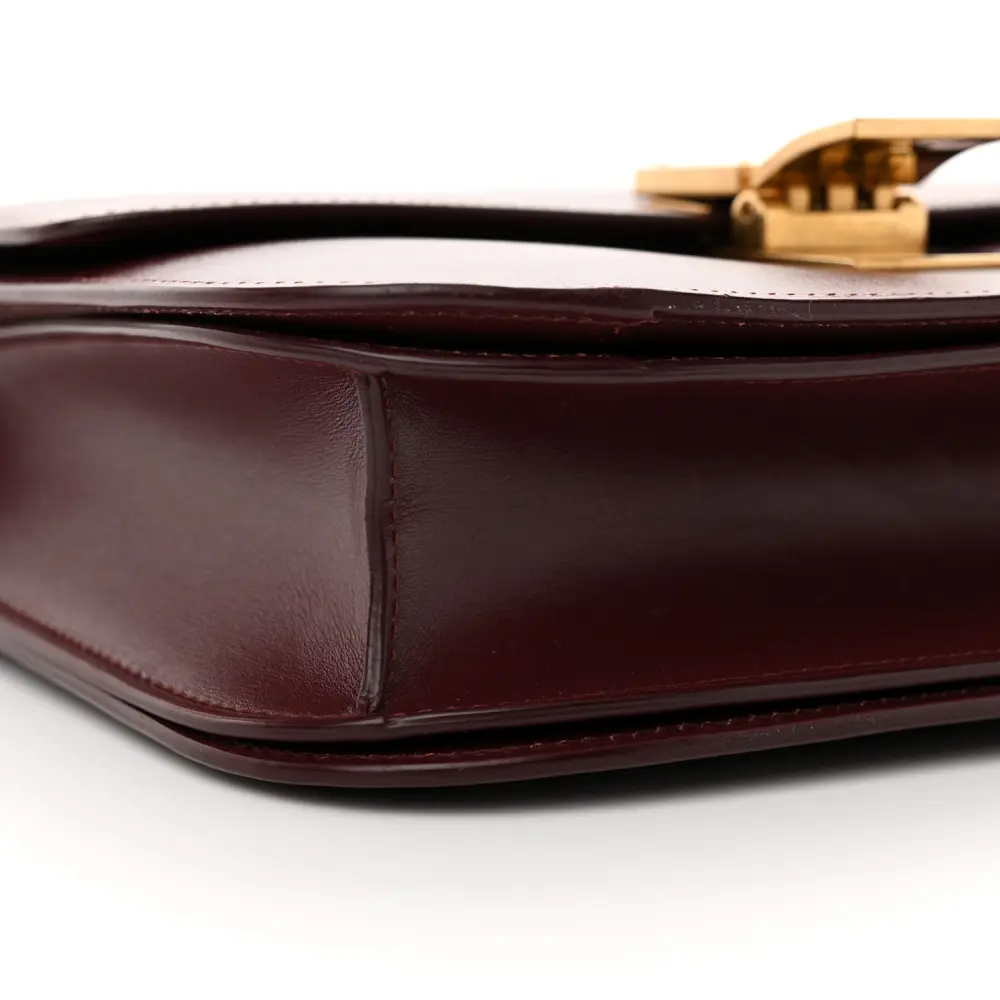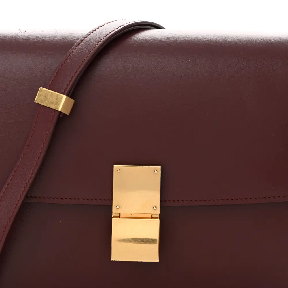 Celine Medium Classic Box Flap Bag Burgundy Box Calfskin Leather Gold Hardware