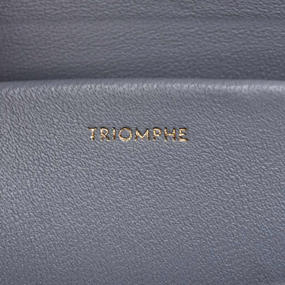 This Celine Medium Triomphe Shoulder Bag in Arctic Blue showcases shiny calfskin leather. Gold hardware complements its sleek and contemporary design. Perfect for both casual and formal occasions.