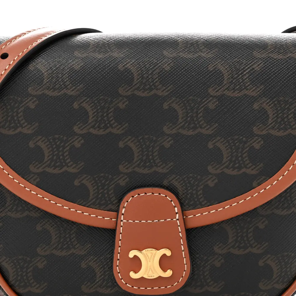 This Celine Mini Besace in Tan combines Triomphe canvas and calfskin leather with gold hardware. The flap closure adds elegance to its compact design. Spacious enough for essentials, it’s perfect for casual outings. The adjustable strap ensures versatile wear.