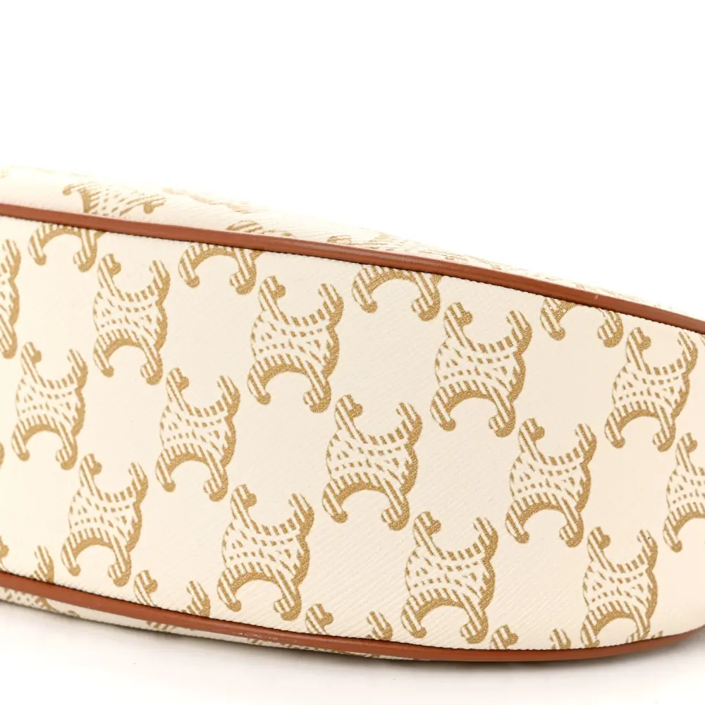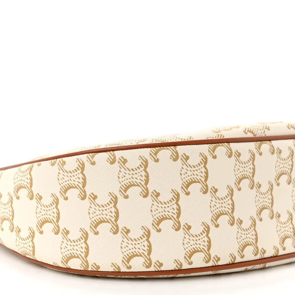 Celine Small Ava Triomphe Shoulder Bag White Canvas & Calfskin Leather Gold Hardware $430